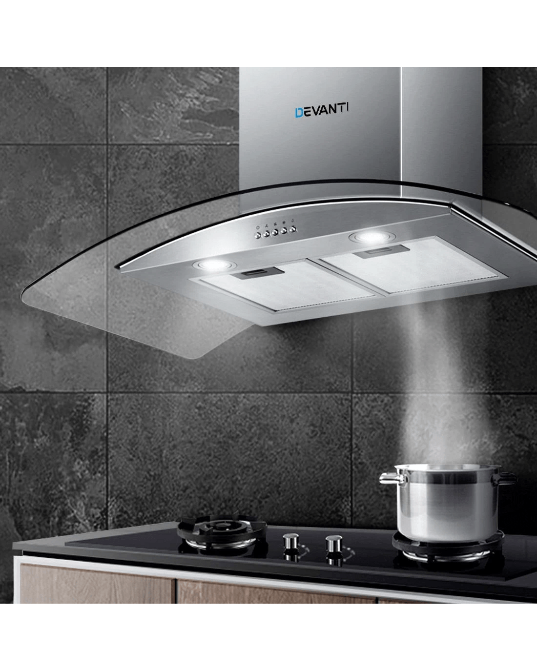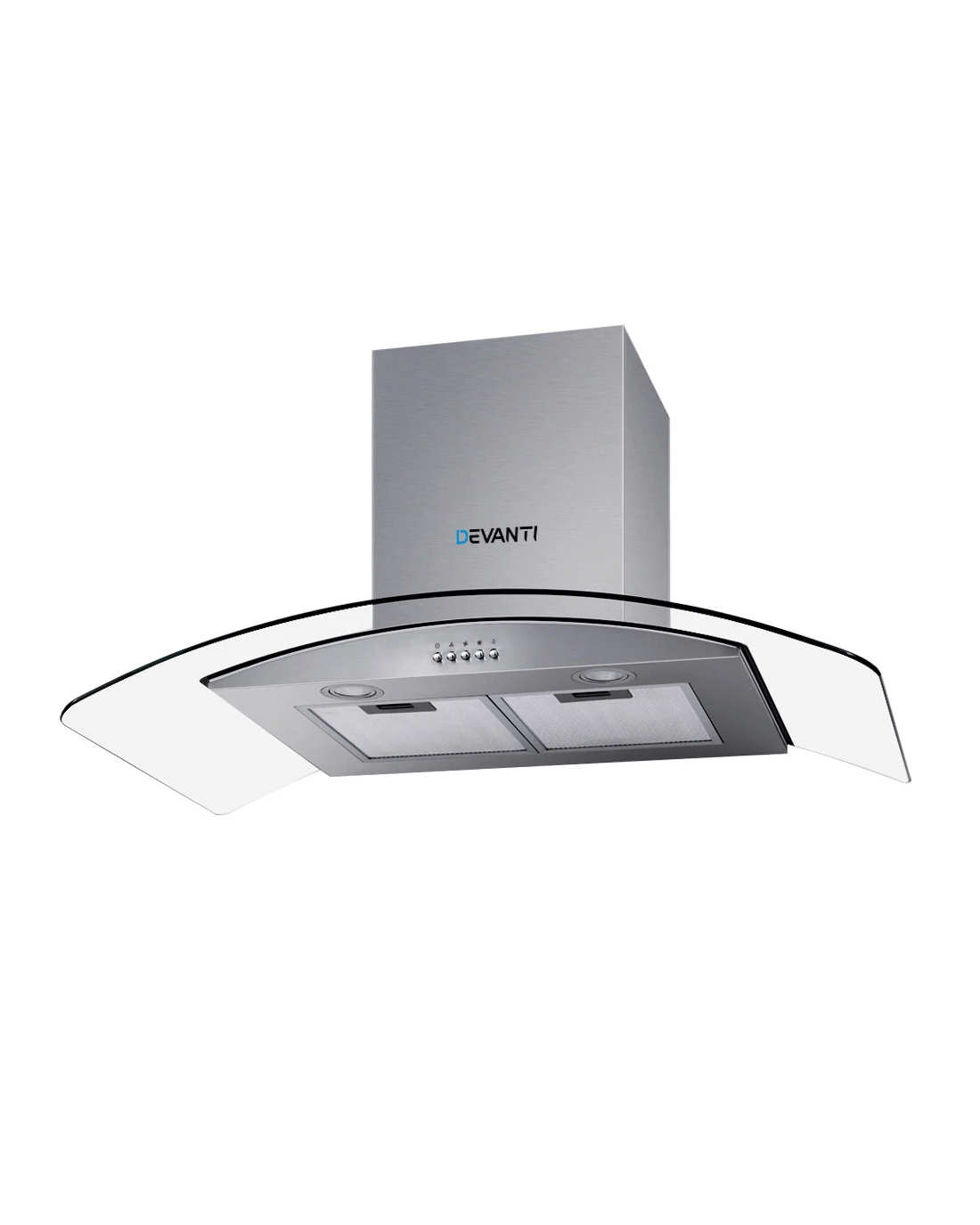 Devanti 900mm Range Hood 90cm Rangehood Glass Canopy - Silver