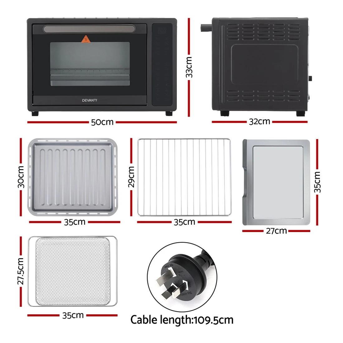 Devanti Air Fryer 32L W/ LCD Touch Oven 1700W - Black