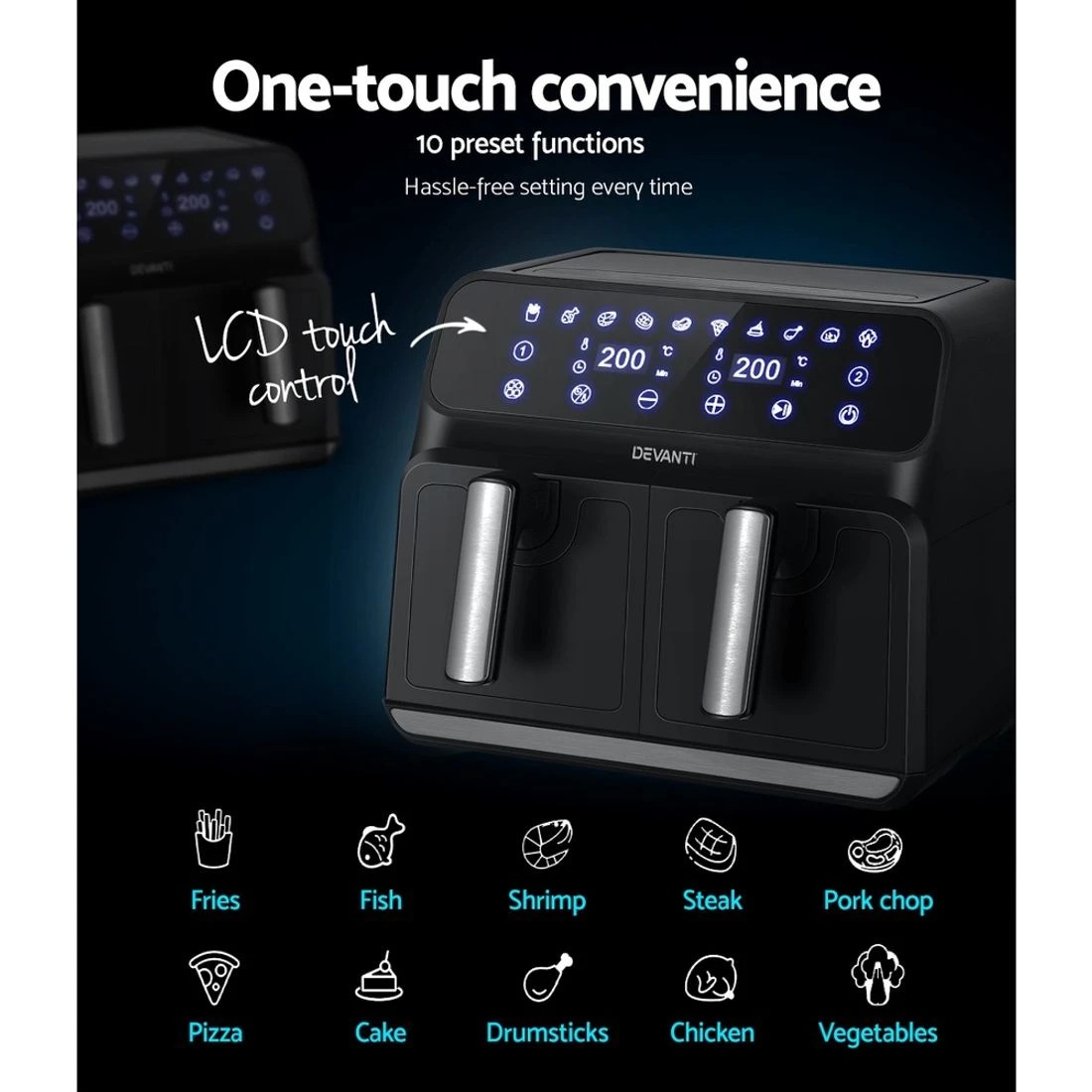 Devanti Air Fryer 8L Dual Zone Fryers - Black