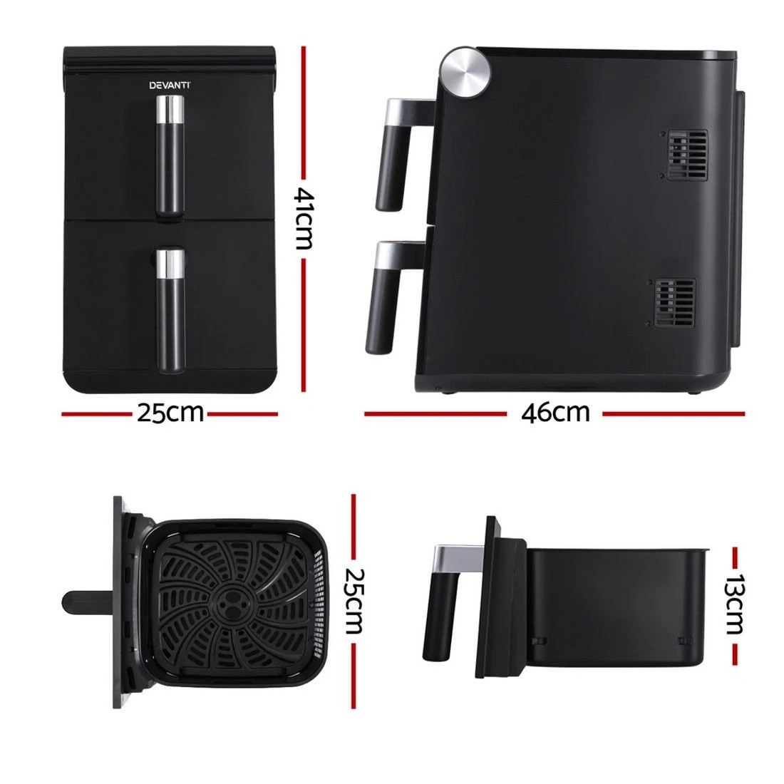 Devanti Air Fryer Oven 11L Dual Zone Fryers - black