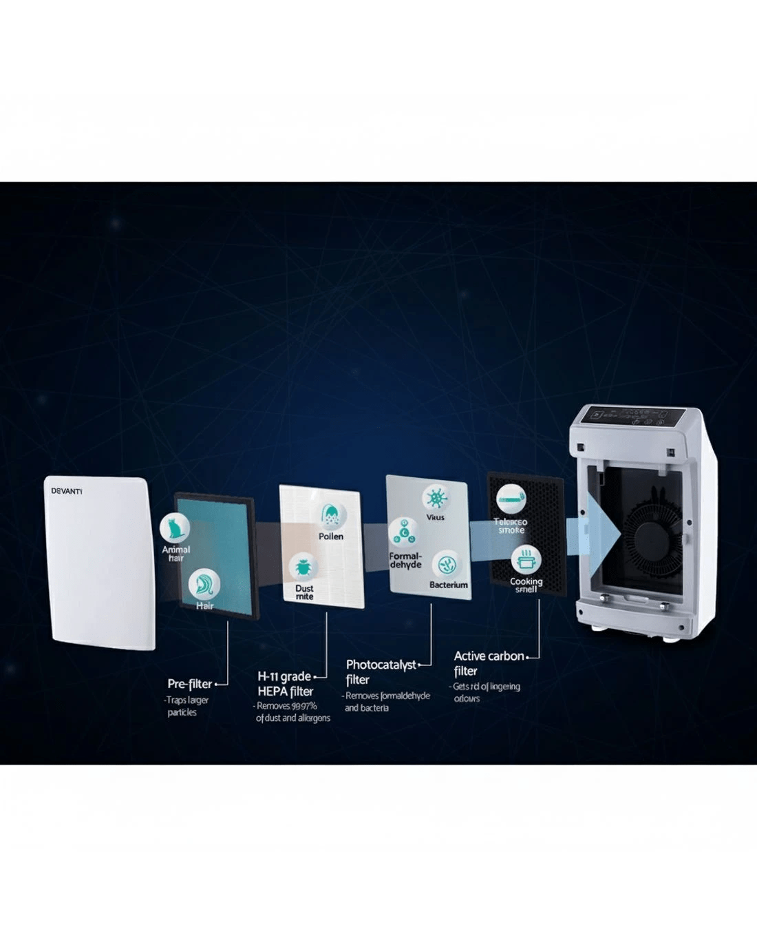 Sold by Aisle SixDevanti Air Purifier 4 Stage HEPA Filter - Multi