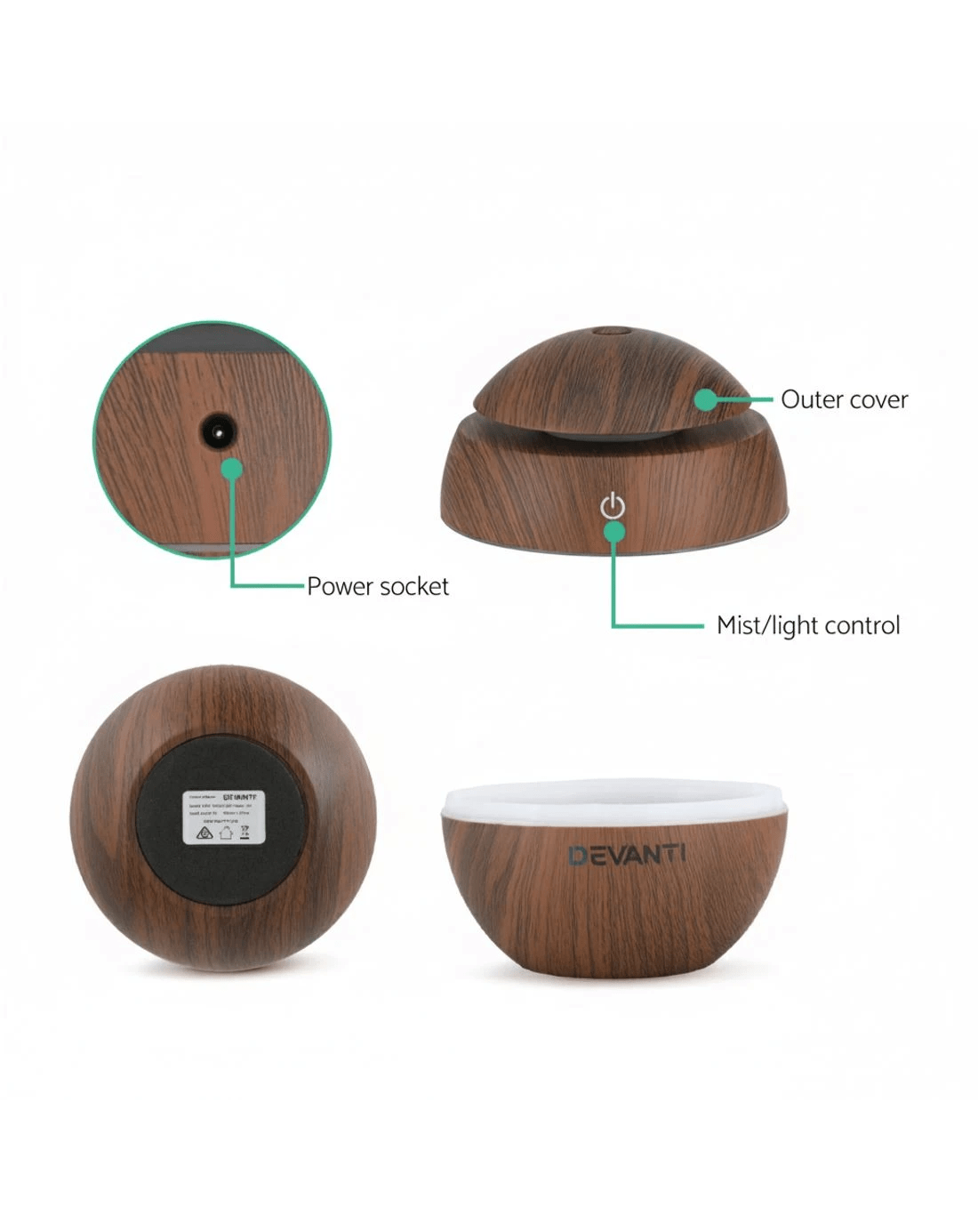 Devanti Aroma Diffuser Aromatherapy Dark Wood 130ml - Brown