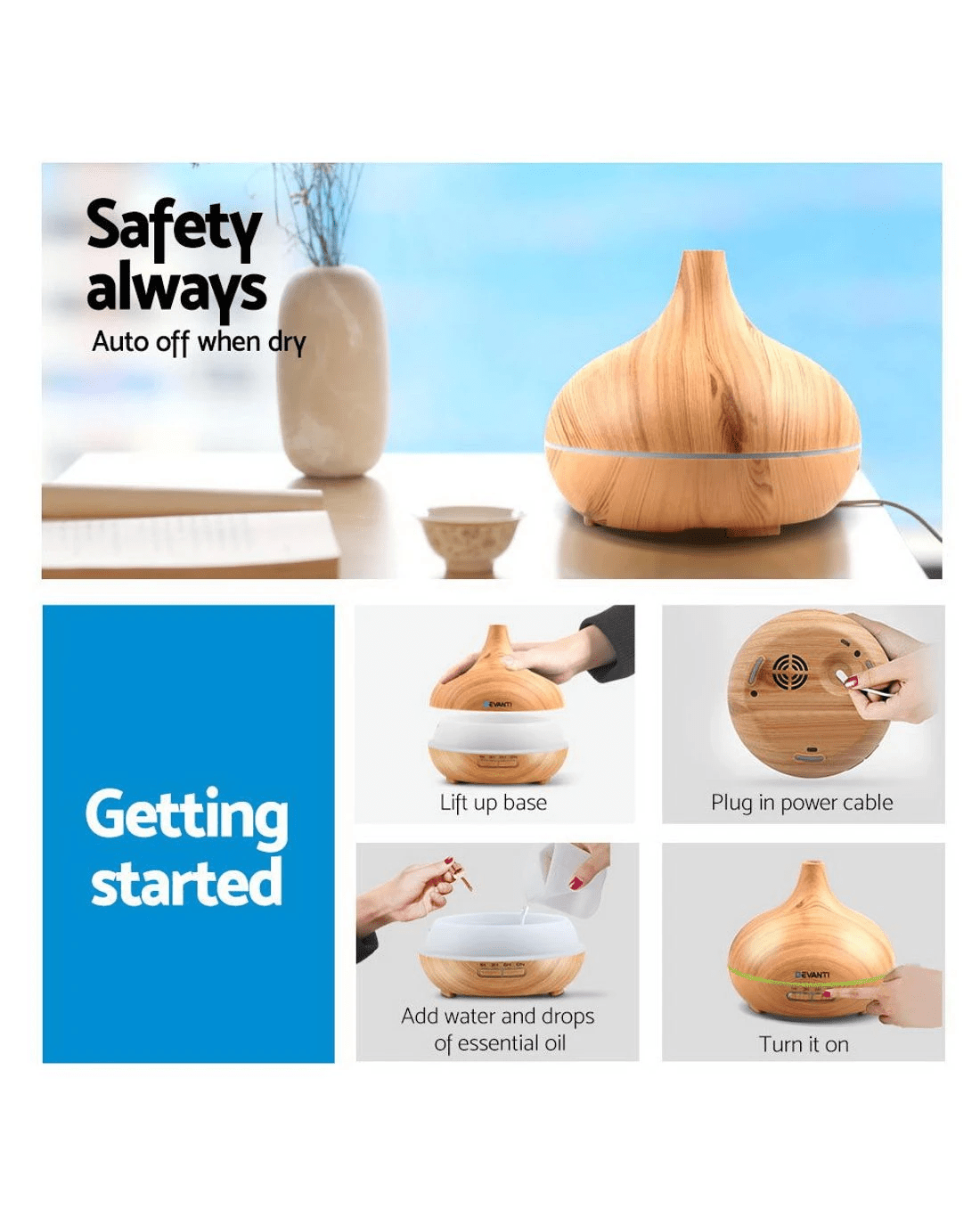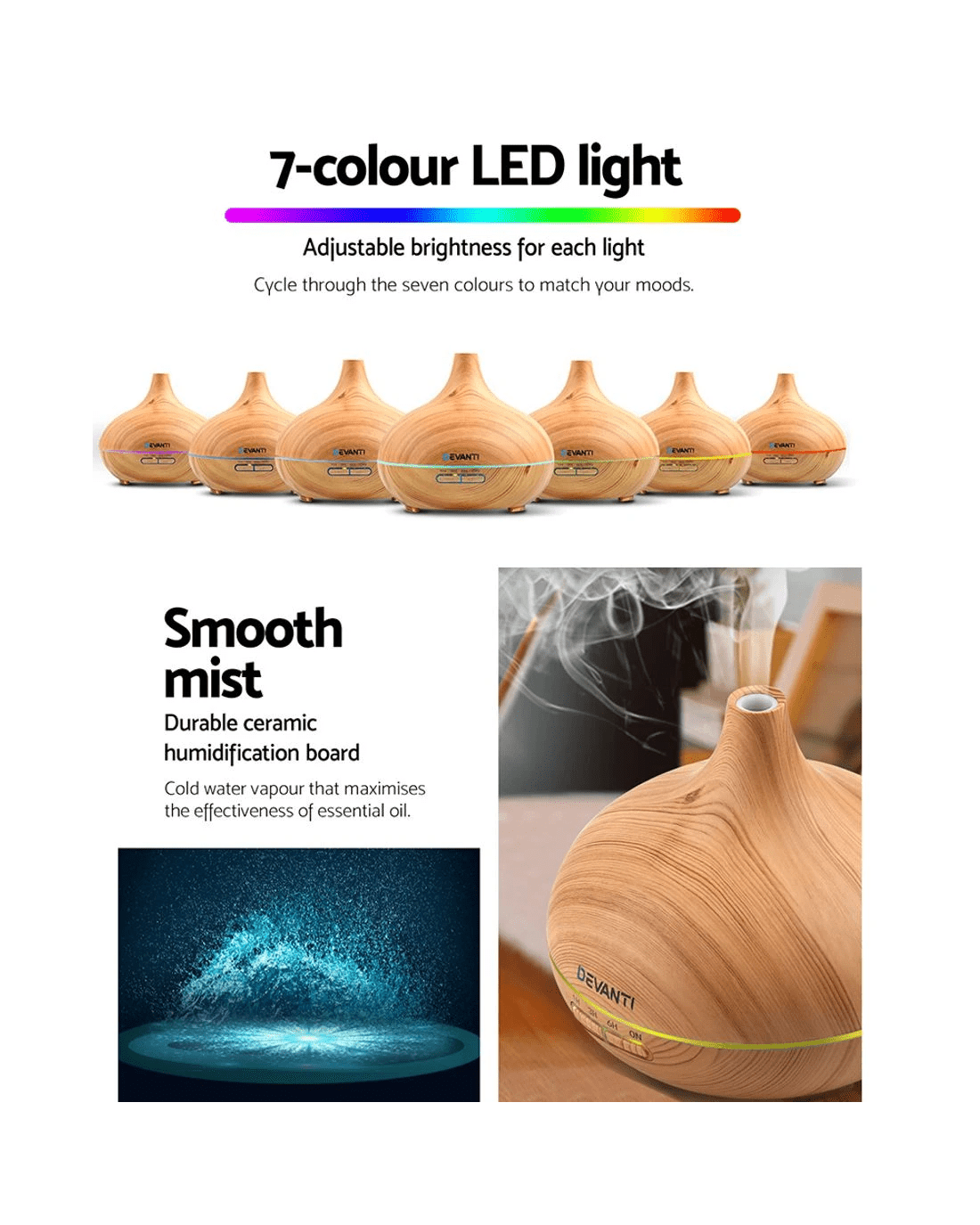 Live life calmer and healthier with the Devanti Aroma Diffuser. Get yours today.
