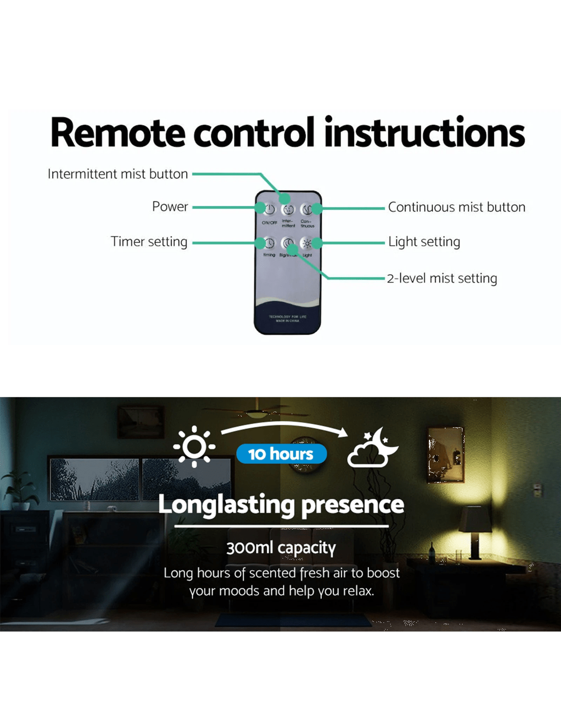With its unique light wood grain finish and a zen-inspired shape vase, the Diffuser actually performs four functions in one device: humidifier, purifier, night light and aromatherapy. It uses electronic frequencies to create vibration in water. The resulting mist is then carried to the top where it absorbs the essential oils to purify the air and remove unwanted odours. At the same time, you experienced a scented aroma to calm and revitalize your body.