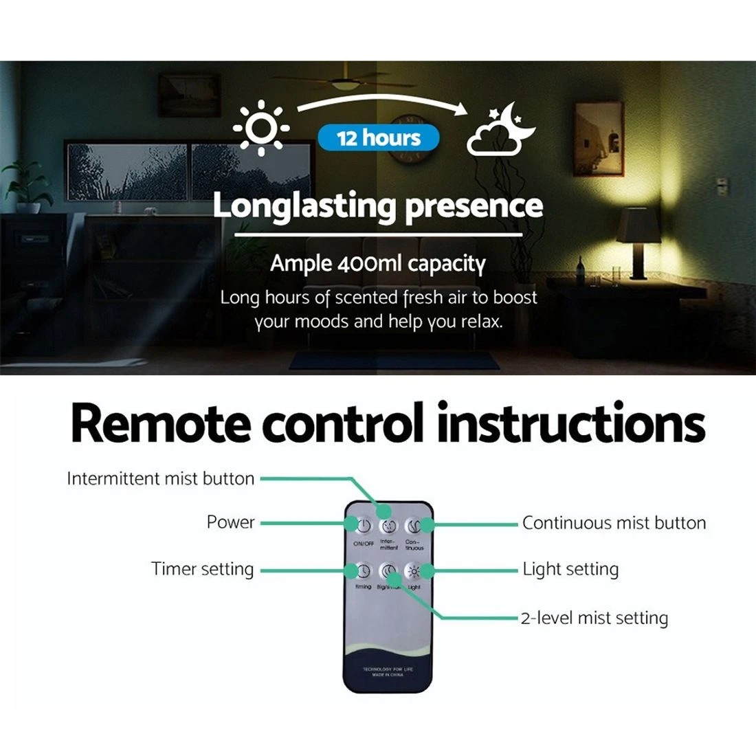 Devanti Aroma Diffuser Aromatherapy Light Wood 400ml Essential Oil Humidifier Quiet Timer Auto Shut Off Relaxing - Brown