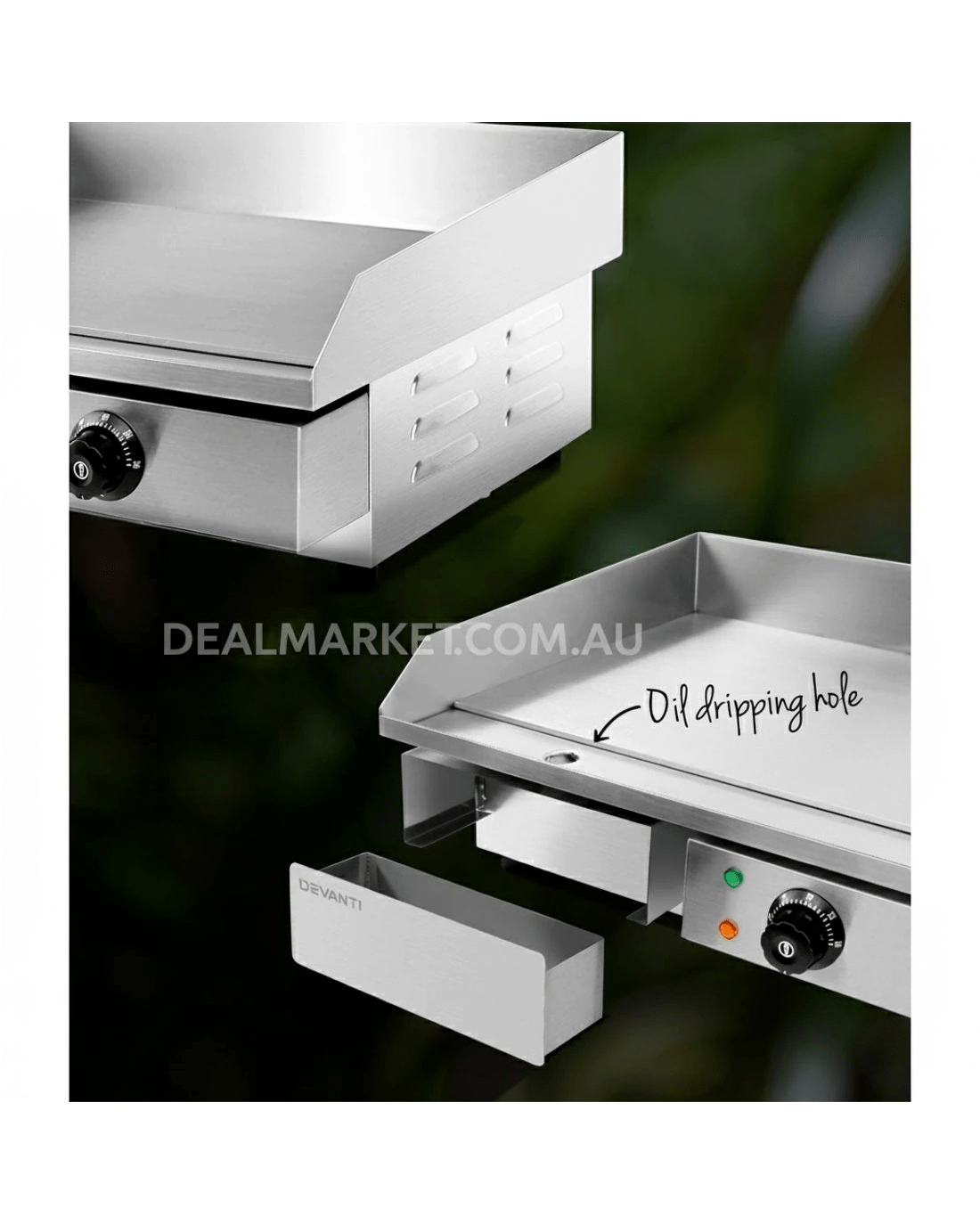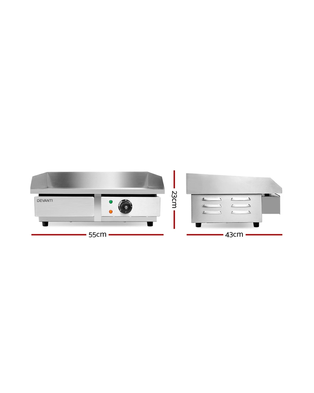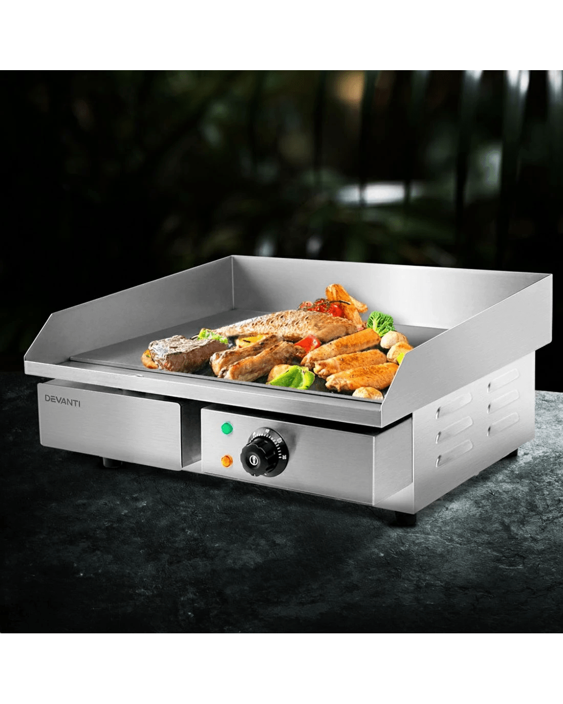 Sold by Aisle SixDevanti Commercial Electric Griddle 55cm BBQ Grill Plate 3000W - Silver