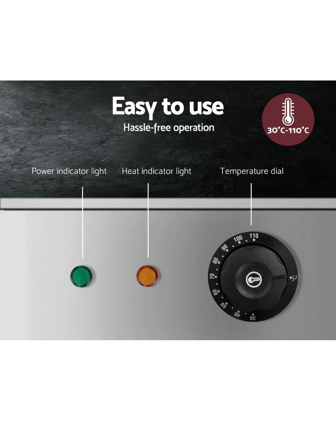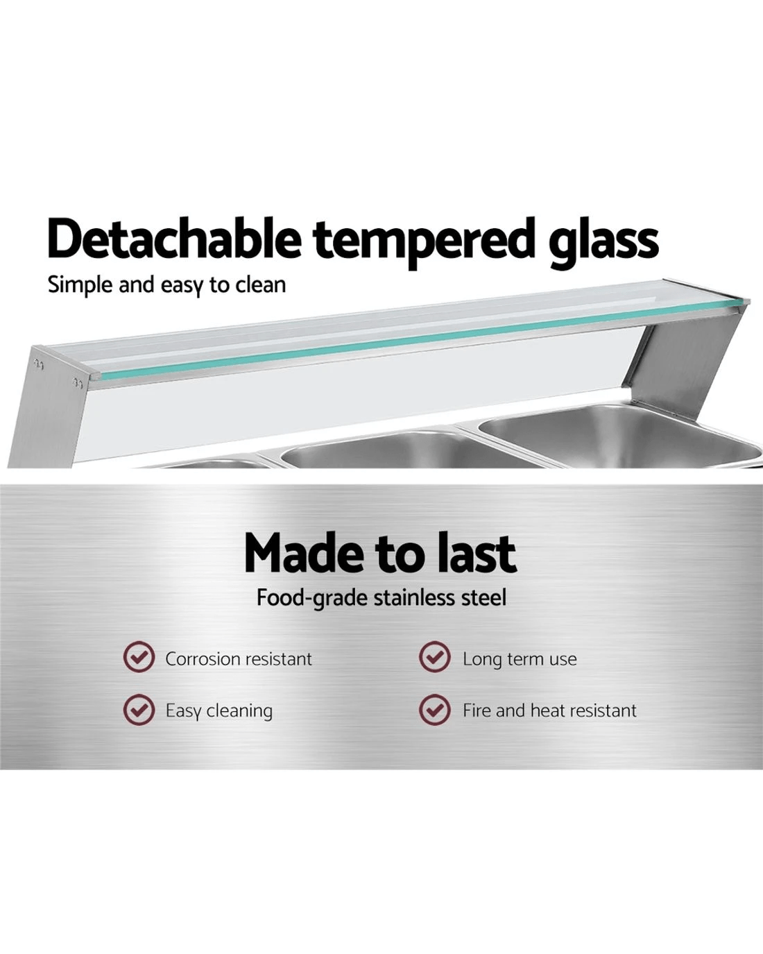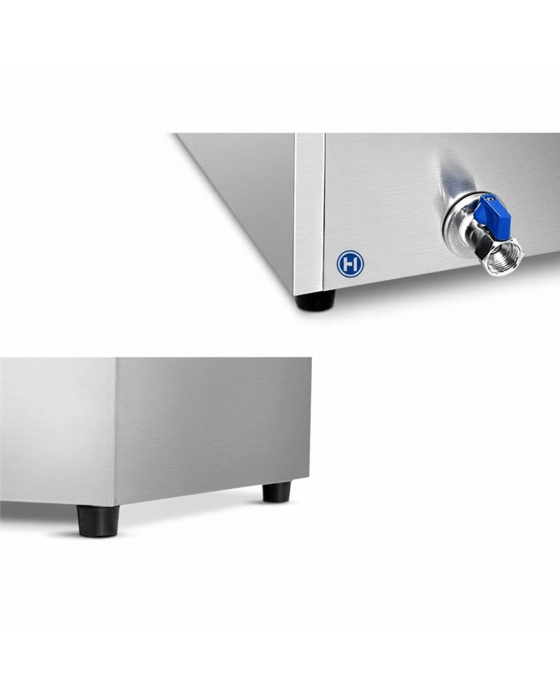 Keep pre-cooked food at perfect ready-to-eat temperatures for extended periods or cook delicate foods such as sauces and mousses with our Commercial Bain Marie. Just fill the removable water bath with water up to about 3cm above the heating element and place the three removable food-grade stainless steel pans on top. Set the temperature between 30℃ and 110℃ with the rotary dial and the bain marie heats up the water to generate gentle and even heat that keeps the food warm without sticking, burning or drying out. The bain marie comes with additional useful features such as detachable tempered glass doors for easy cleaning, drain tap to easily drain excess water and non-slip rubber feet for a firm stand. Perfect for commercial settings such as buffets, takeaway eateries and catering, or even at home for large parties, our bain marie is sure to make a lovely dining experience for everyone.
