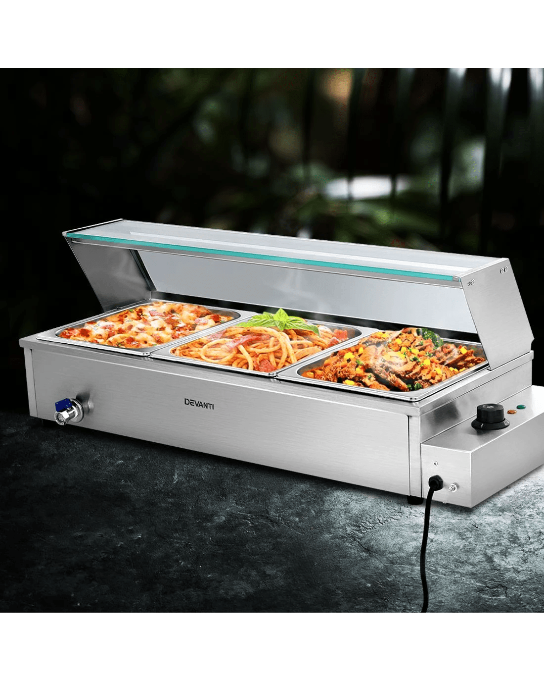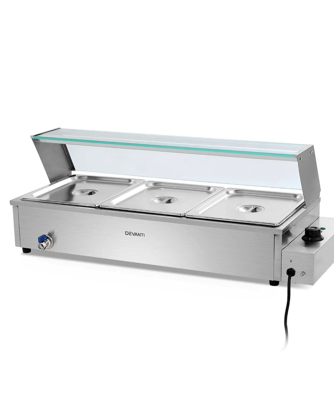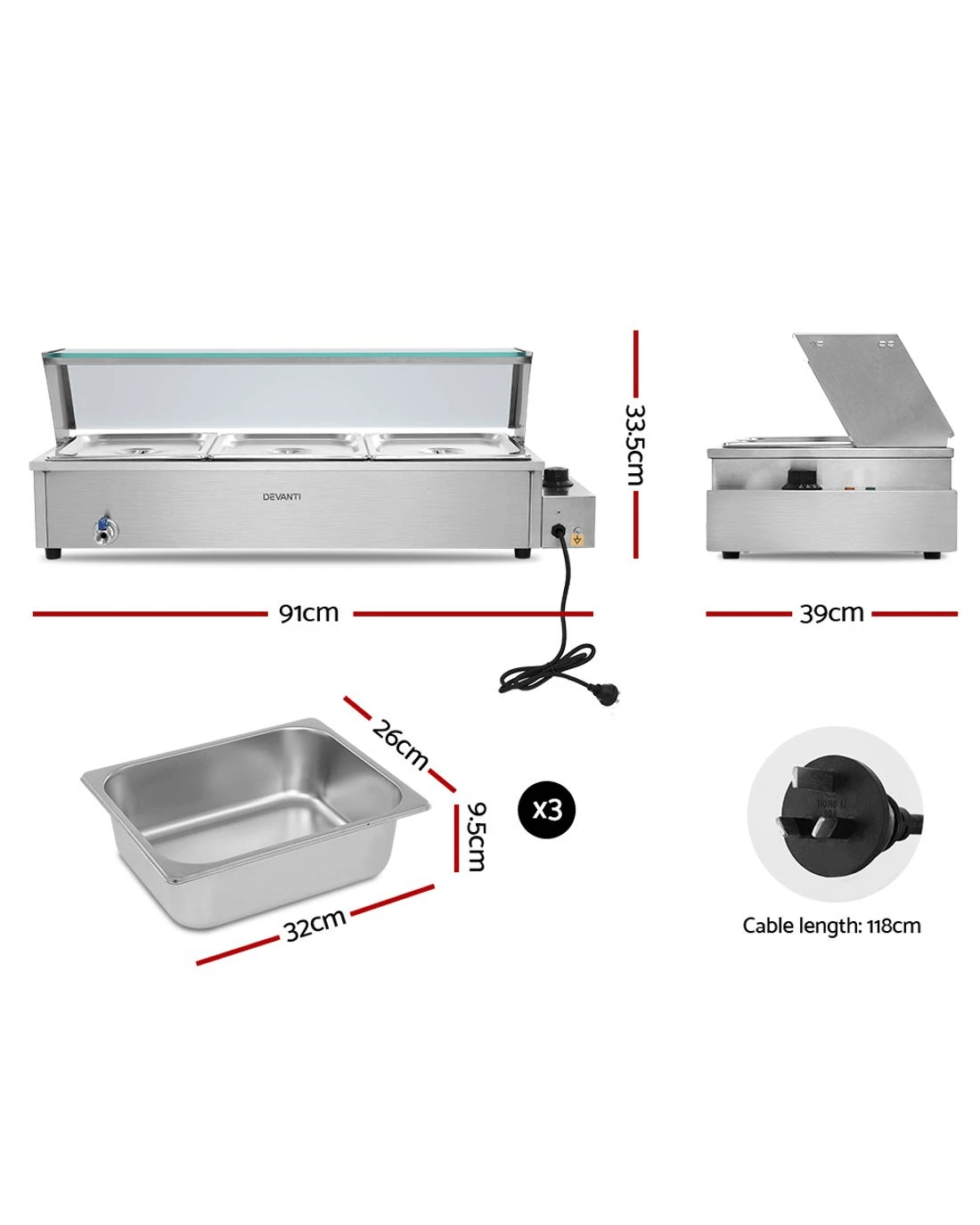 Sold by Aisle SixDevanti Commercial Food Warmer Bain Marie 3 Electric Buffet Pans - Silver