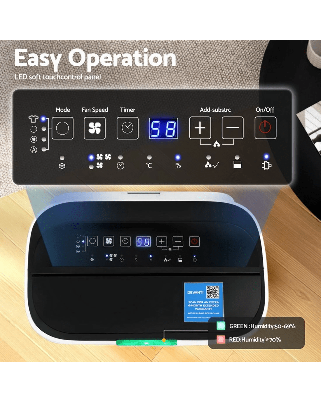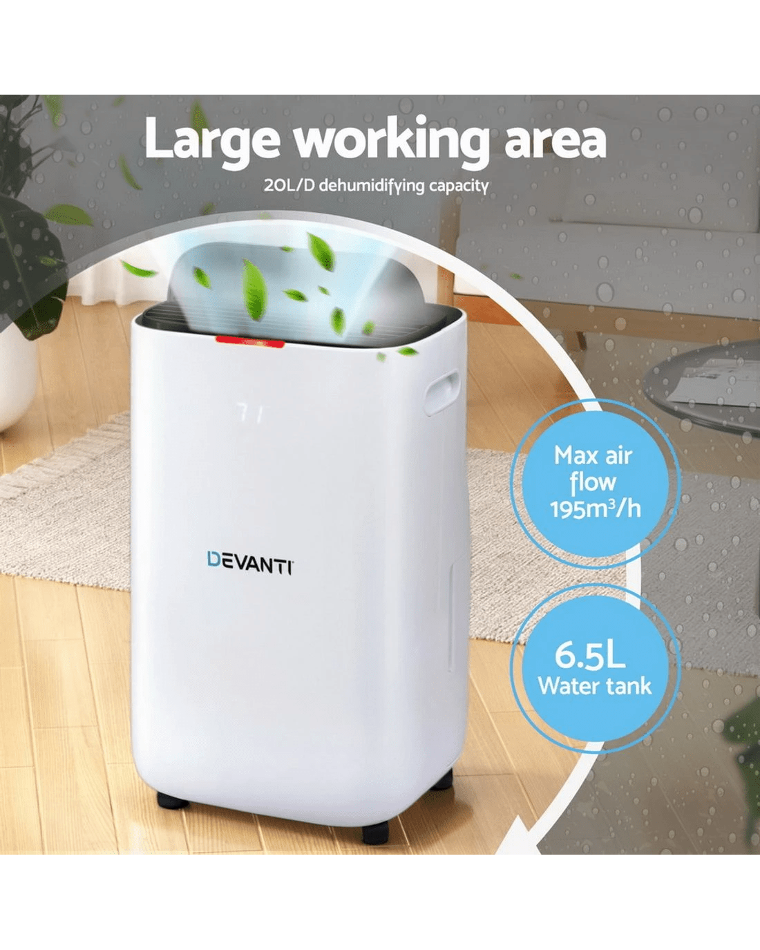 Say goodbye to dampness, musty smells, and slow-drying laundry with the Devanti 20L Dehumidifier.