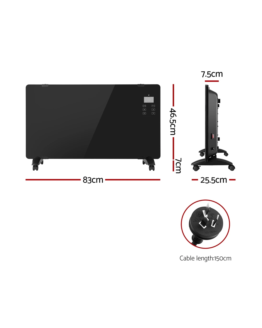 The Devanti Convection Heater is a versatile and efficient heating solution for your indoor space. With rapid heating, you can heat your home easily and quickly. The adjustable thermostat allows you to maintain a comfortable environment, while the LED digital display provides clear visibility of the current settings. The heater operates quietly, ensuring a peaceful and cosy atmosphere. It offers convenient features such as a 24-hour timer, an on/off switch, several convenient programming modes and a remote control for easy operation from a distance. Safety is a top priority with the inclusion of a safety cut-out switch and overheating protection. With flexible mounting options, whether you prefer to have it freestanding with smooth castor wheels or wall-mounted, the choice is yours. Keep your home cosy and comfortable in cold weather with the Devanti Convection Heater.