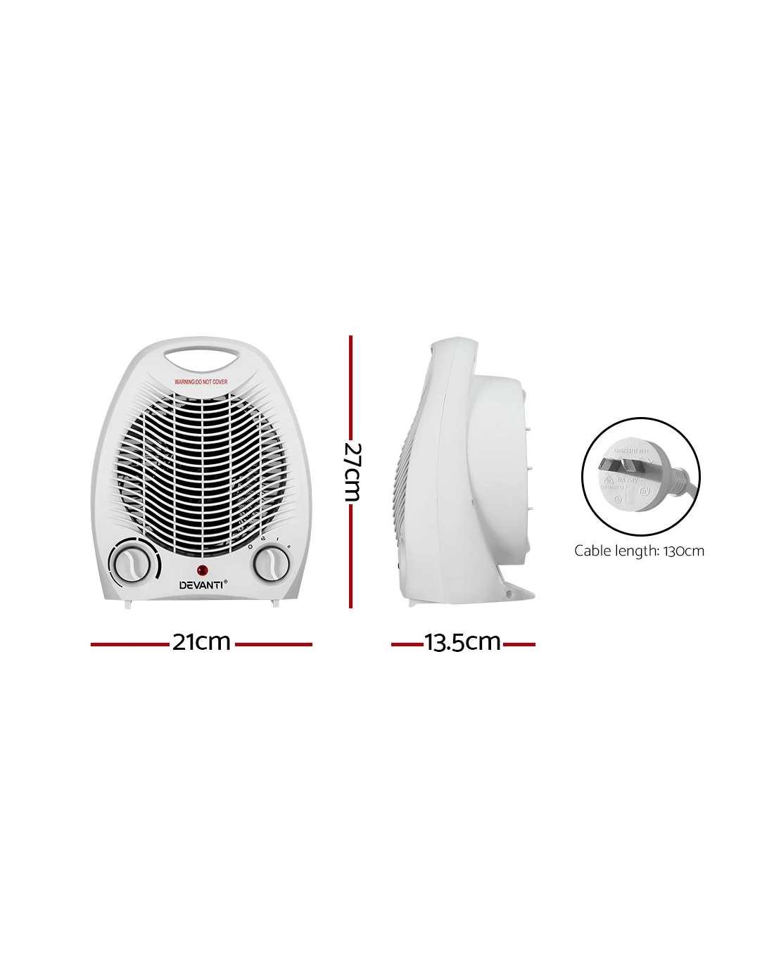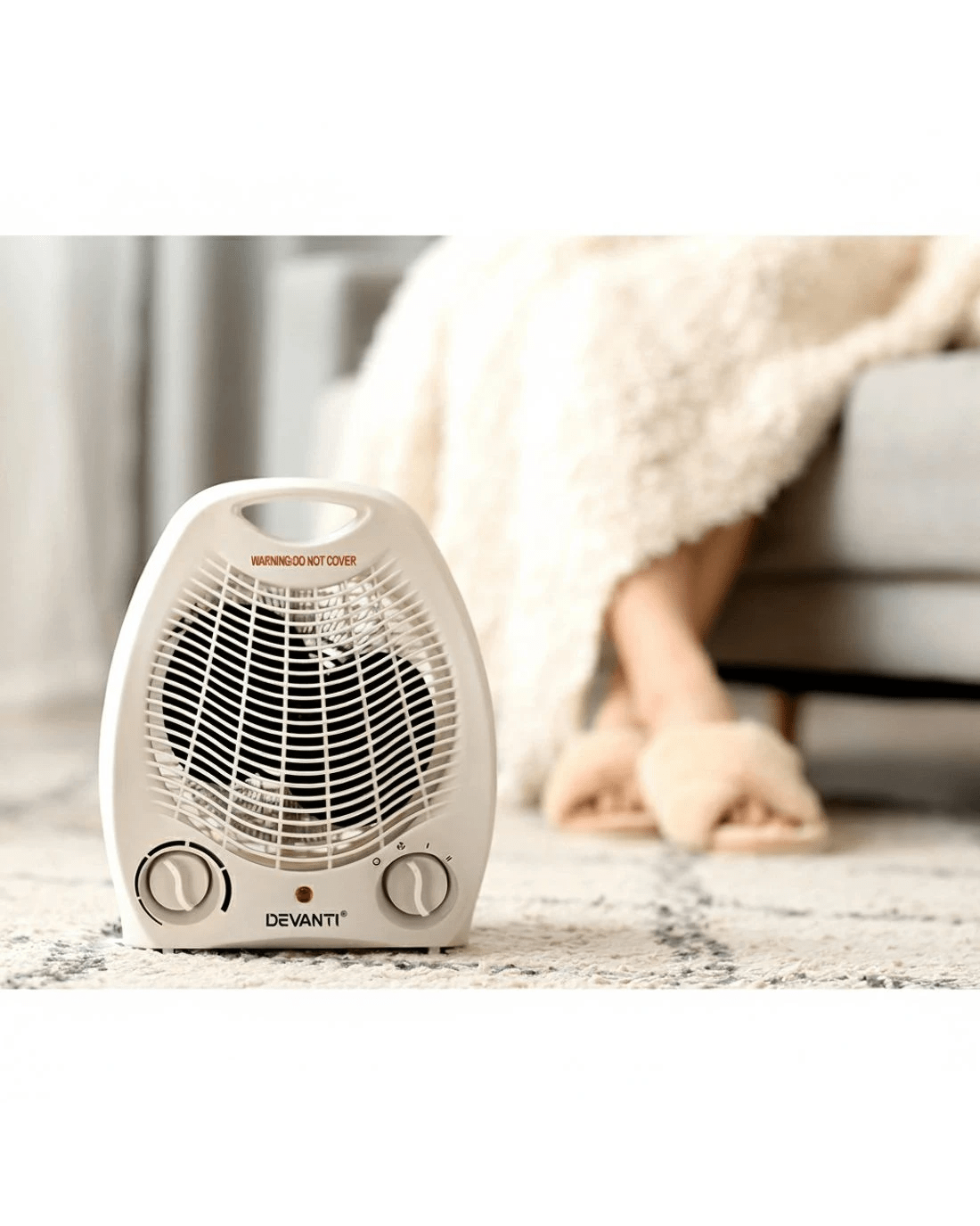 Need a little extra heating to get through winter? The Devanti Fan Heater is here to solve your winter blues. With its high-quality rapid electric wire heating element and fan system, the heater will have you warm in no time at all. It has two heat settings and three unique modes (cool, warm and hot) so you're always at the perfect temperature. Its compact design will fit anywhere from your living room to under your desk, and it features a convenient handle to easily carry your heater from room to room. The thermostat control knob helps you view and maintain the desired temperature. Best of all, the heater has built-in safety features such as a safety cut-off switch in case of tipping and overheating protection. For maximum comfort and warmth through the winter months, you can't go wrong with a Devanti Fan Heater.