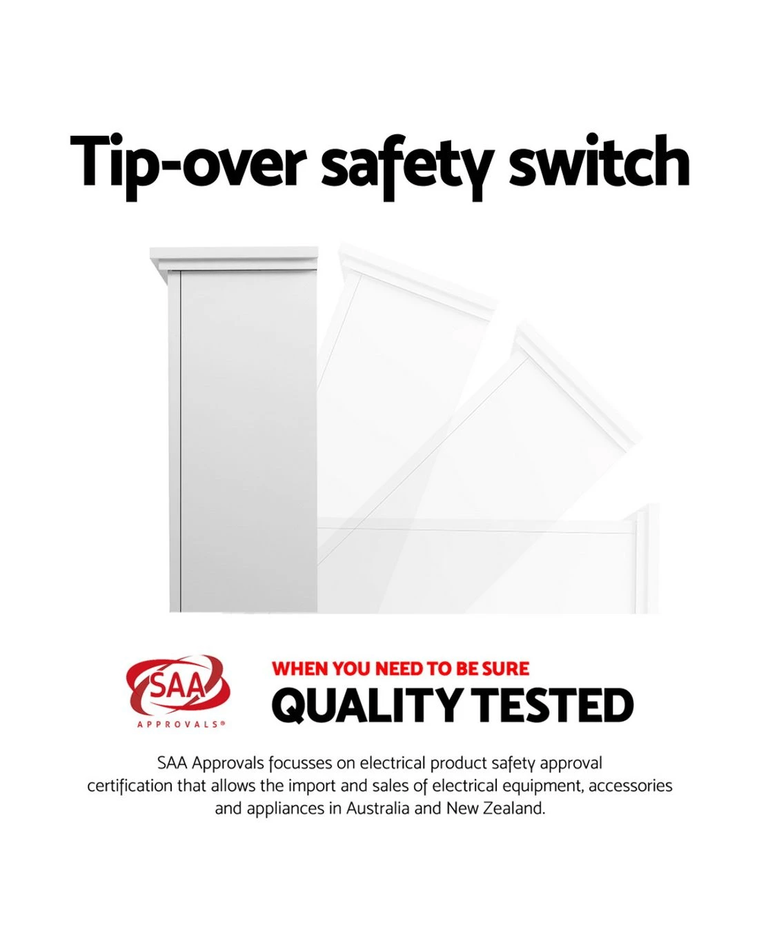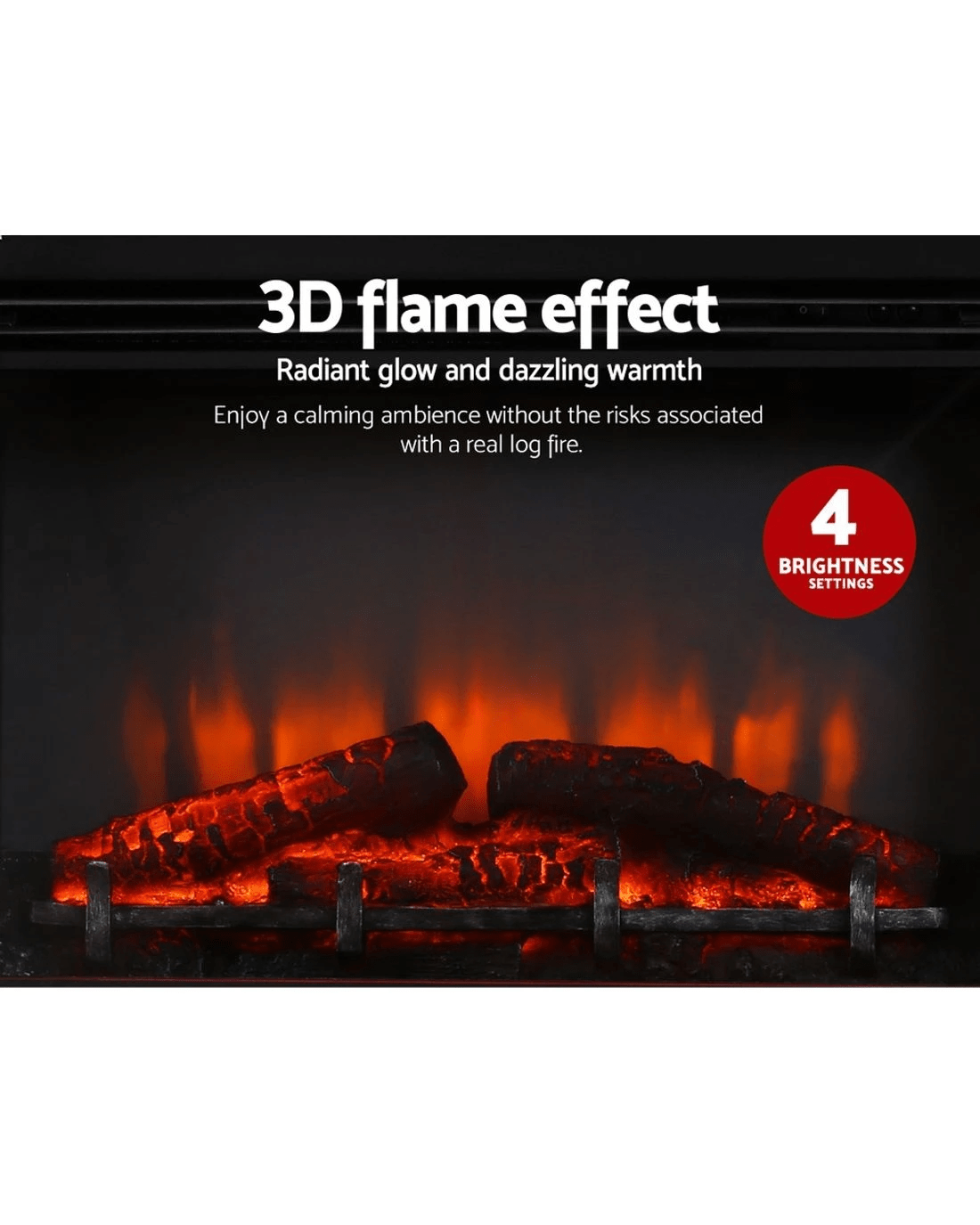 Old world charm with a modern touch. The Devanti Electric Mantel Fireplace delivers dazzling warmth with radiant glows. With its classic design, the mantel fireplace captures the mood of a traditional fireplace with a contemporary update. More importantly, the aluminium heating elements actually helps to maintain natural humidity in the air for comfortable heat without drying out the room air. The heater heats up rapidly and uses over 90% less energy than gas for better costs savings. Good all-round heating is also ensured with the fan-assisted heated air circulation. And if flickering flames are a must, our fireplace provides a 3D flame effect with glowing embers for a totally authentic presence. Constructed of MDF board with a black tempered glass casing, the fireplace is strong and durable. Convenient adjustments from the handy remote control include high/low heat settings, nine-hour timer setting and thermostat for the desired warmth and ambience. The fireplace features overheating protection, auto shut-off and no worries about carbon dioxide emissions, odours or fumes from traditional fireplaces.