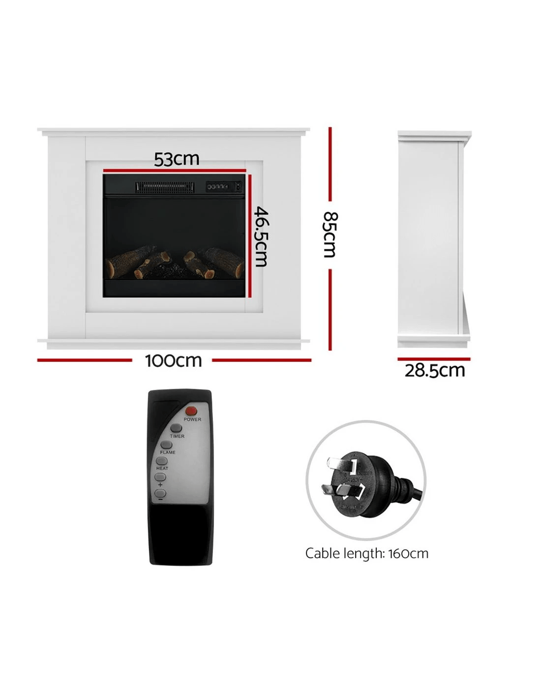 Devanti Electric Fireplace Fire Heater 2000W - White