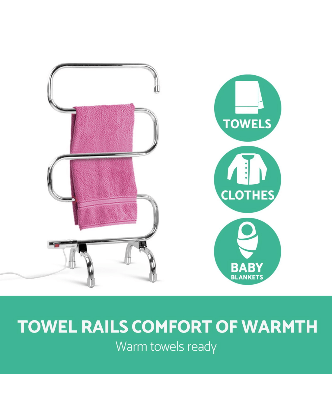 Sold by Aisle SixDevanti Electric Heated Towel Rail Rack 5 Bars Freestanding Clothes Dry Warmer - Silver
