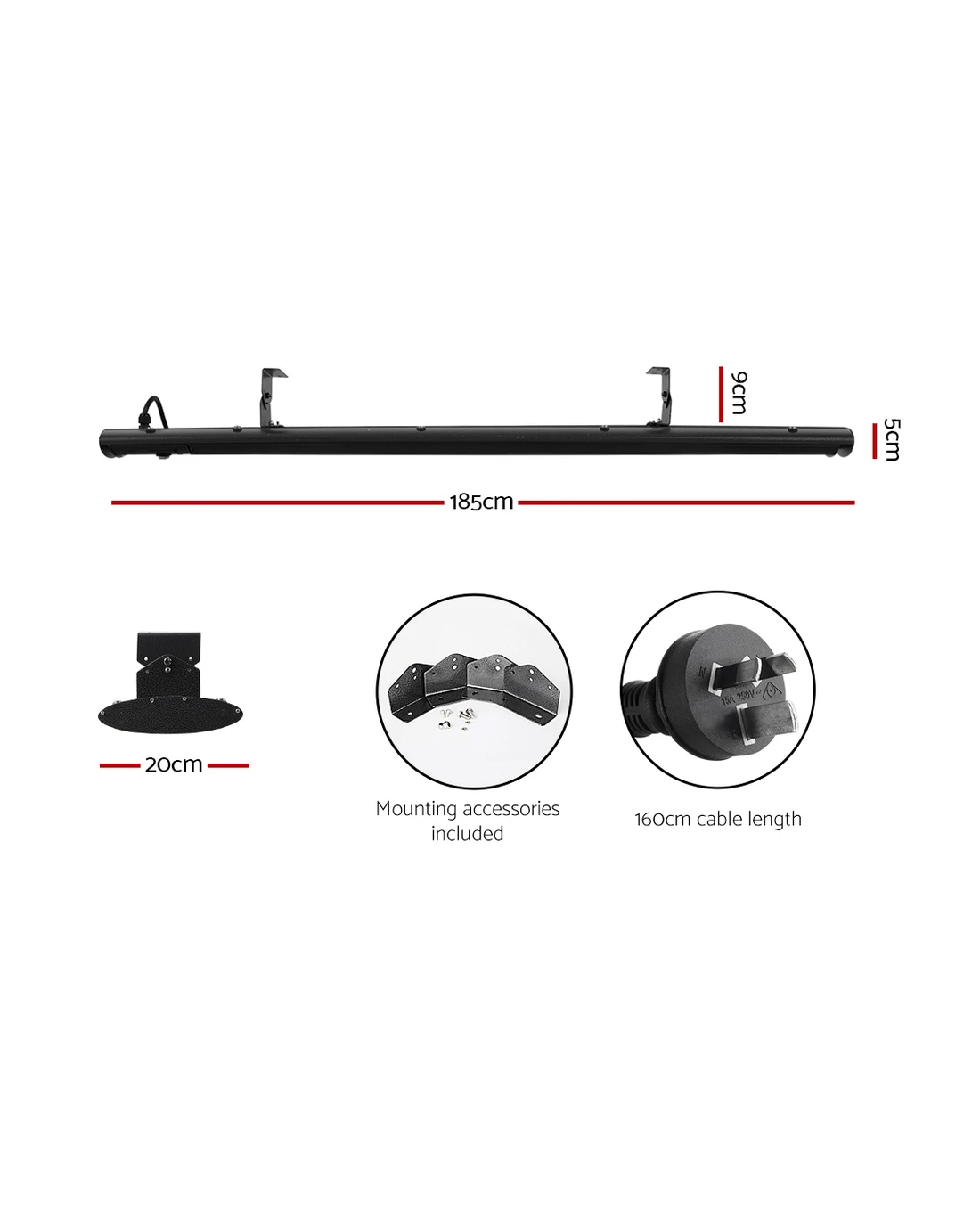 Overall dimensions: 185cm x 20cm x 5cm