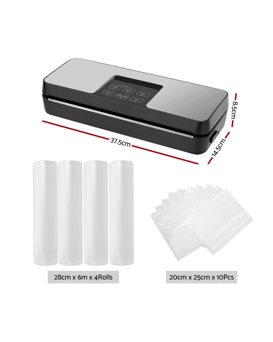 Sold by Aisle SixDevanti Food Vacuum Sealer Machine Auto Seal Cutter 5 Modes Storage Bags 28cm×6m 4 Rolls - Multi