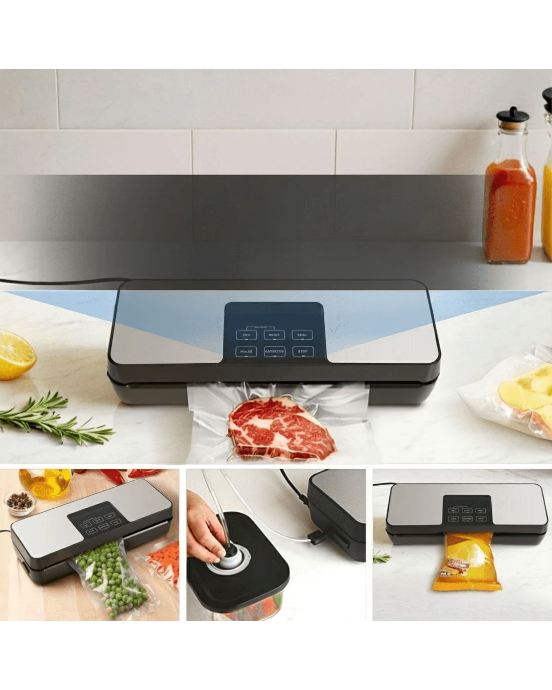 The food vacuum sealer is a must-have kitchen gadget that is designed to maintain the freshness of different types of foods for an extended time. It comes with 120W power and 80kpa suction pressure to create a perfect airtight seal without any leakage. The smart touch control feature is easy to operate, allowing you to customise the sealing process for different types of foods. The sealer can handle wet and dry food, canisters, and normal sealing. It is portable, easy to clean, and suitable for both commercial and household use. Additionally, it comes with a built-in cutter for easy operation, 4 rolls of vacuum sealed bags,With the added bonus of 10pcs vacuum sealer bags, and a vacuum tube for canister needs. Note: It is essential to read the instruction manual carefully before operating the machine.