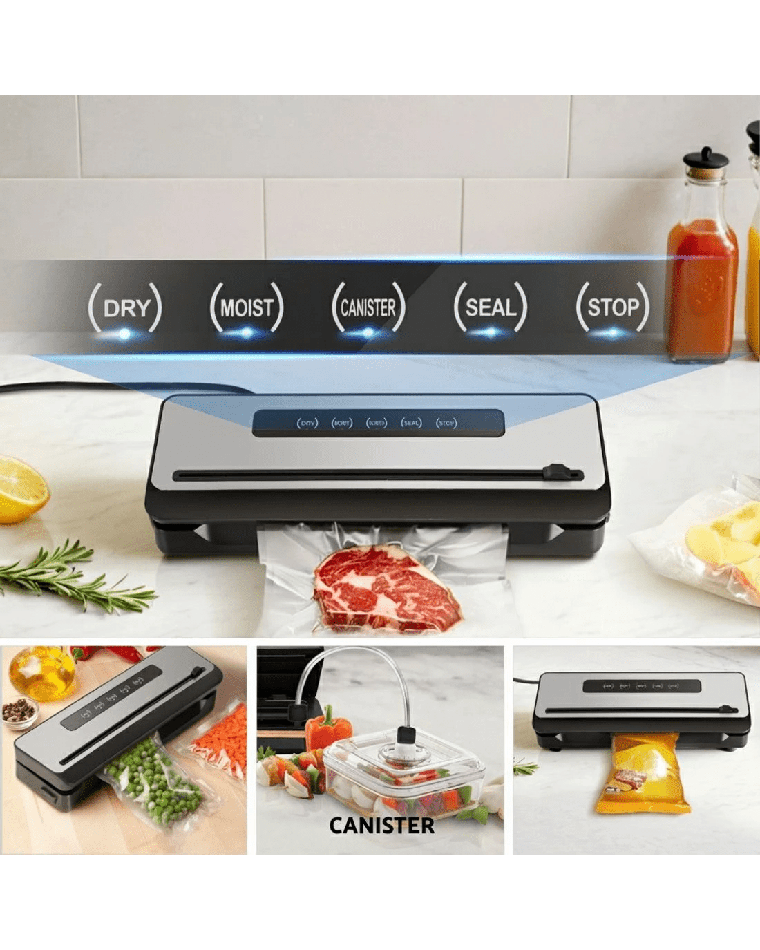 Sold by Aisle SixDevanti Food Vacuum Sealer Machine Sealing Cutter 4 Modes Storage Bags 4 Rolls - Multi