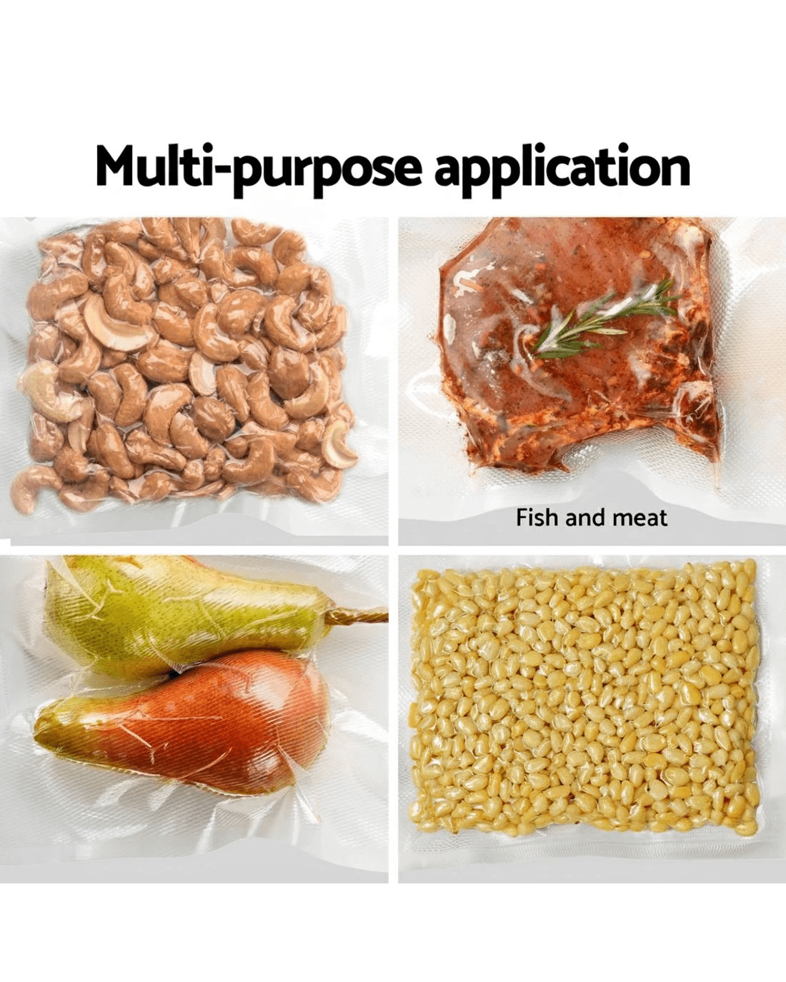 The food vacuum sealer is a must-have kitchen gadget that is designed to maintain the freshness of different types of foods for an extended time. It comes with 110W power and 60kpa suction pressure to create a perfect airtight seal without any leakage. The smart touch control feature is easy to operate, allowing you to customise the sealing process for different types of foods. The sealer can handle wet and dry food, canisters, and normal sealing. It is portable, easy to clean, and suitable for both commercial and household use. Additionally, it comes with a built-in cutter for easy operation, 4 rolls of vacuum sealed bags,With the added bonus of 10pcs vacuum sealer bags, and a vacuum tube for canister needs. Note: It is essential to read the instruction manual carefully before operating the machine.