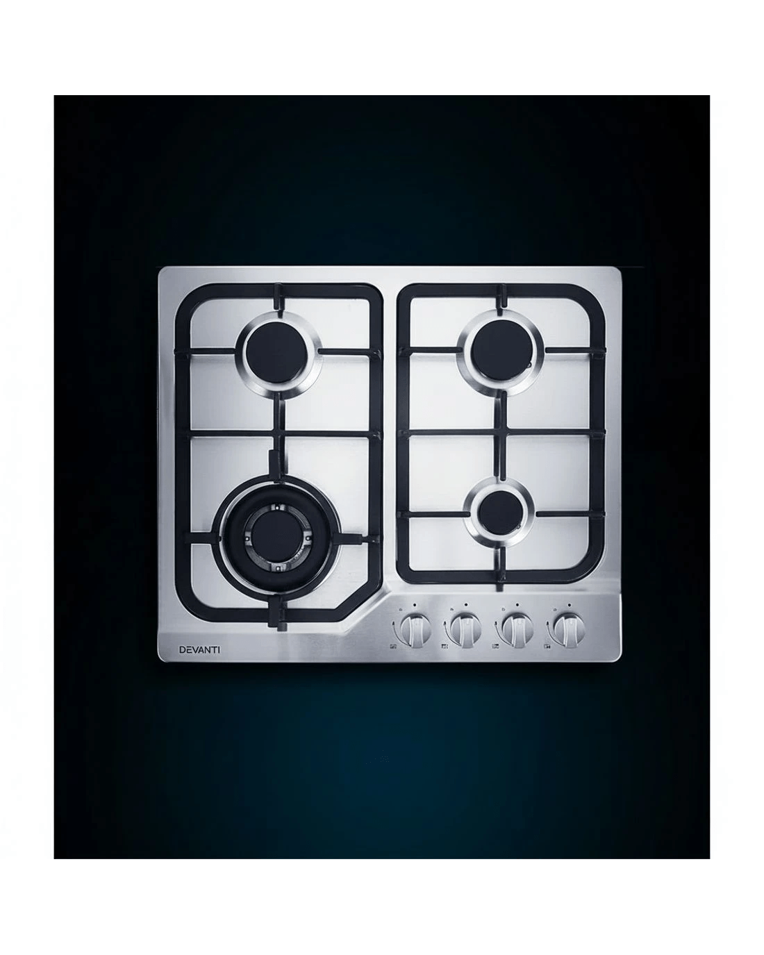 Sold by Aisle SixDevanti Gas Cooktop 60cm 4 Burner Silvir - Silver