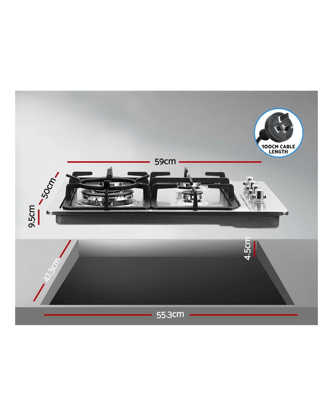 Cut-out dimensions: 55.3cm x 47.3cm x 4.5cm