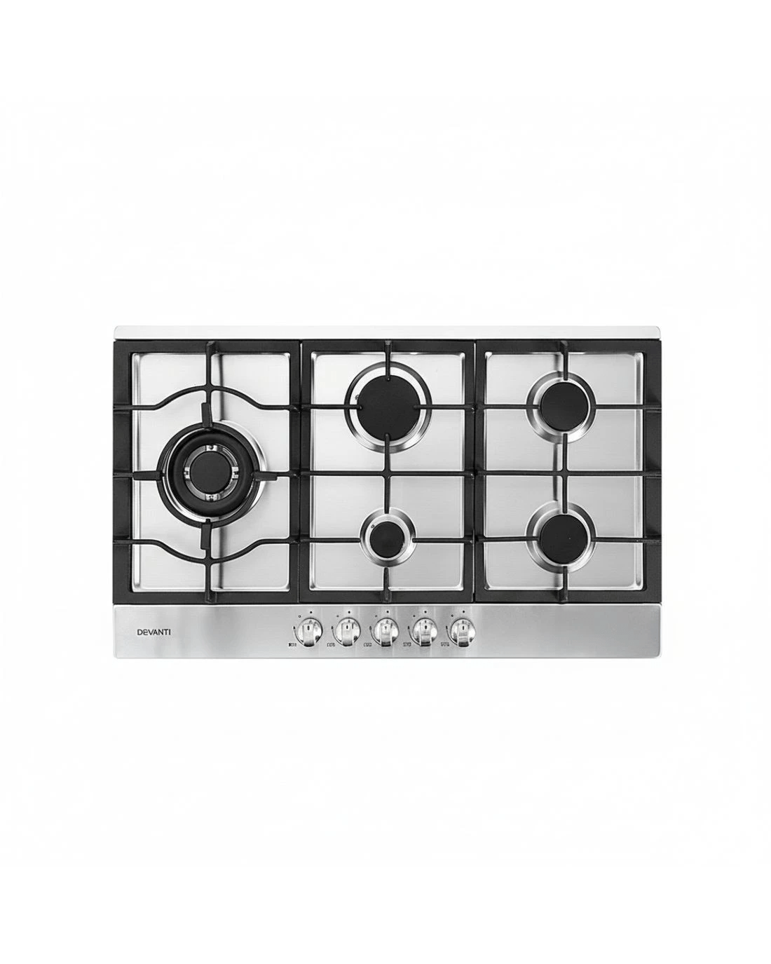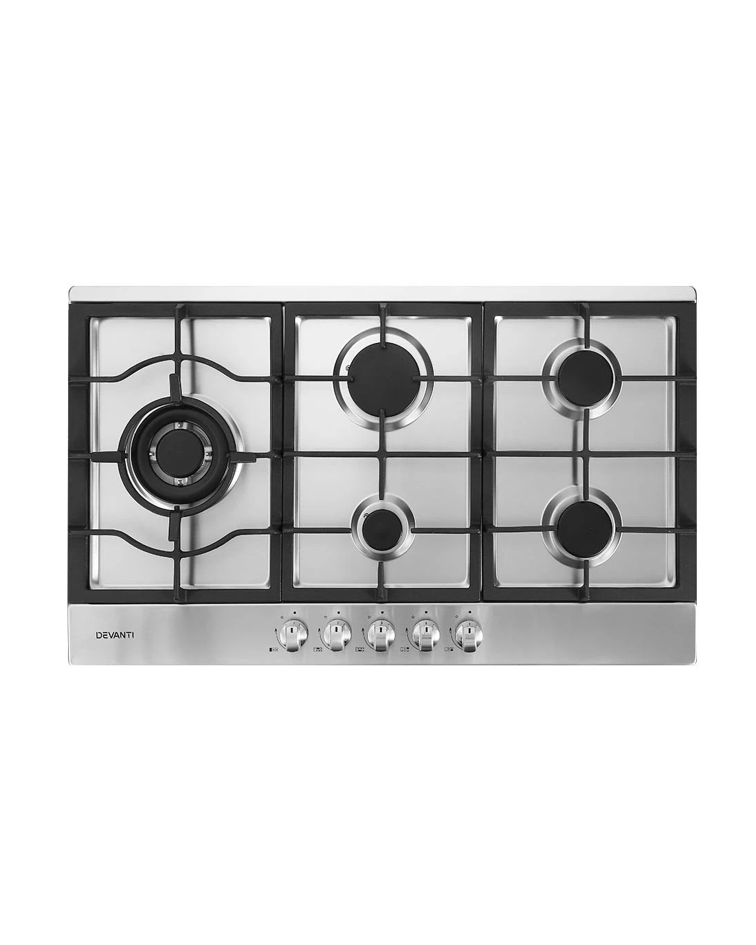 Sold by Aisle SixDevanti Gas Cooktop 90cm 5 Burner Silvir - Silver