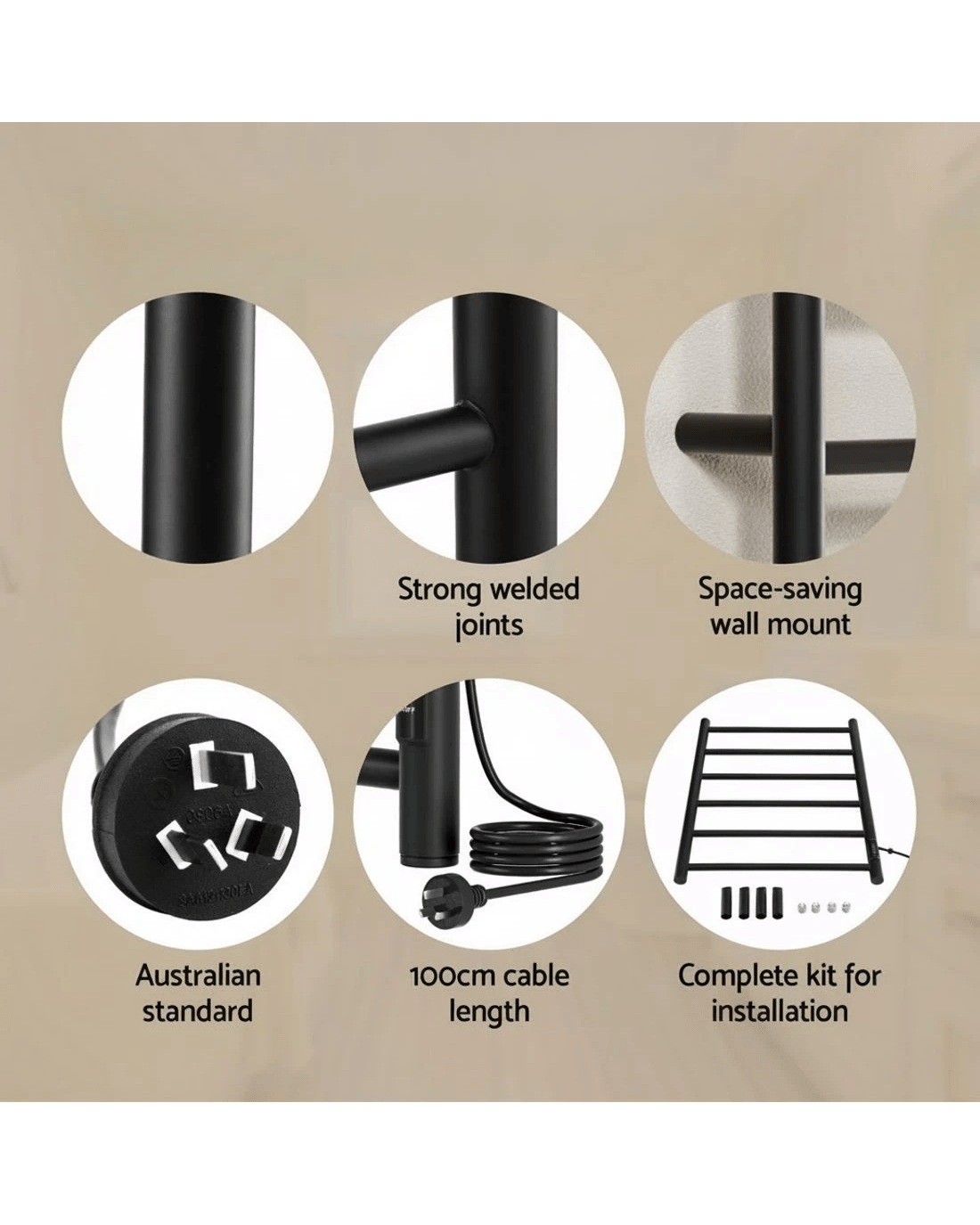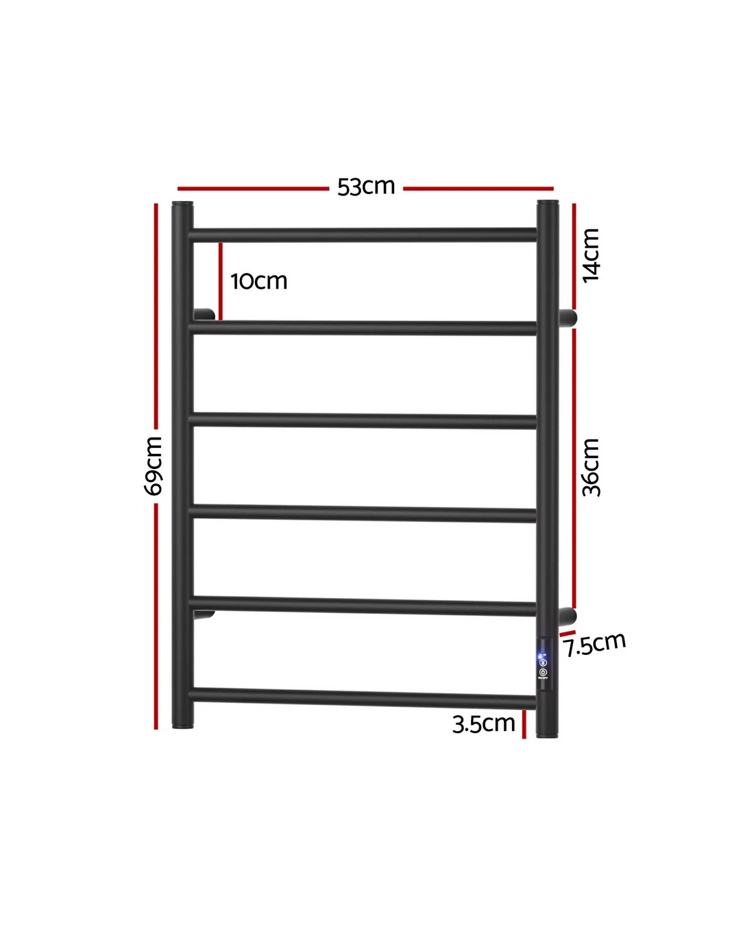 Sold by Aisle SixDevanti Heated Towel Rail 6 Round Bars with Timer Electric Heater Warmer Rack - Black