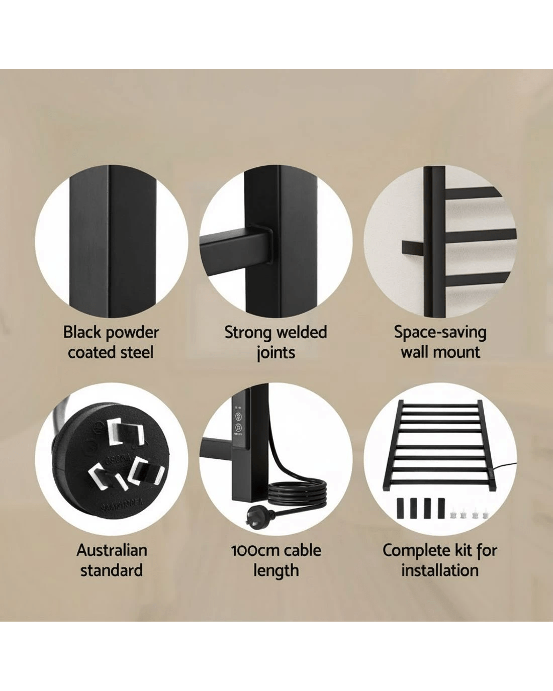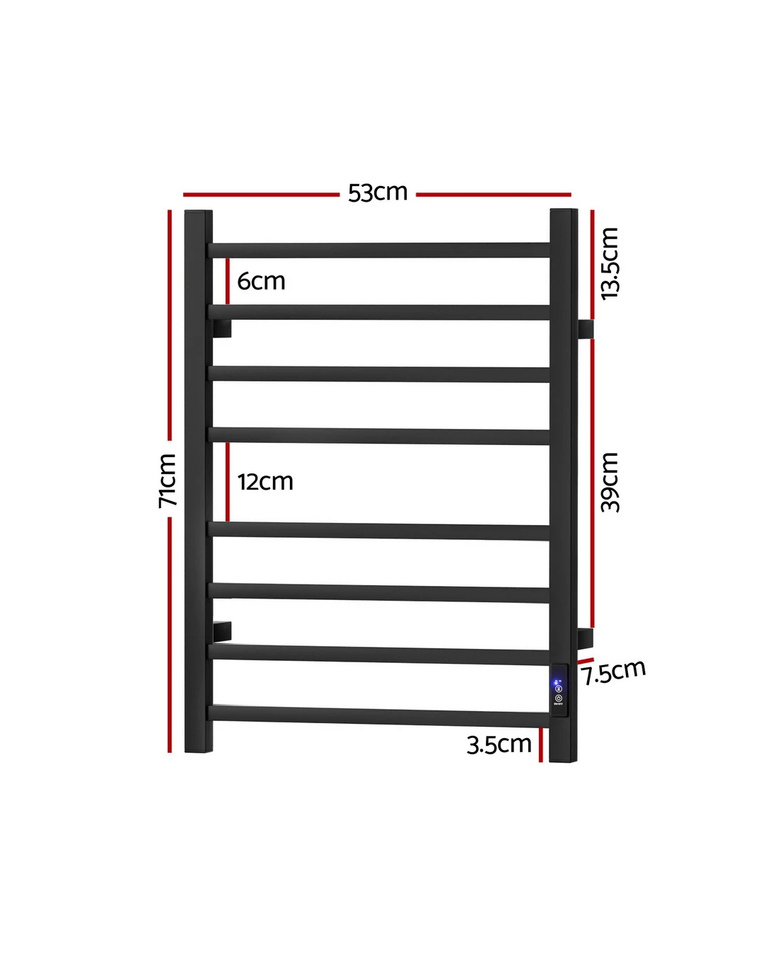 Sold by Aisle SixDevanti Heated Towel Rail 8 Square Bars with Timer Electric Heater Warmer Rack - Black