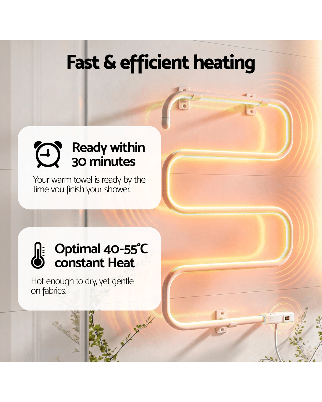 Keep towels fresh and dry this Spring with the Devanti Heated Towel Rail. This versatile 2-in-1 electric towel warmer can be used freestanding or wall-mounted. The 100W, S-shaped towel ladder heats up fast, providing constant 40-55°C warmth. A stylish, efficient solution for any bathroom.