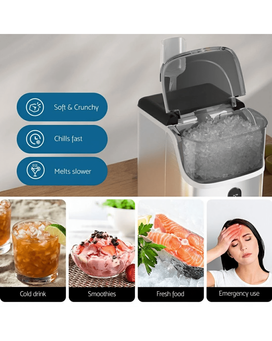 Quick ice production, ready in 5-10 minutes