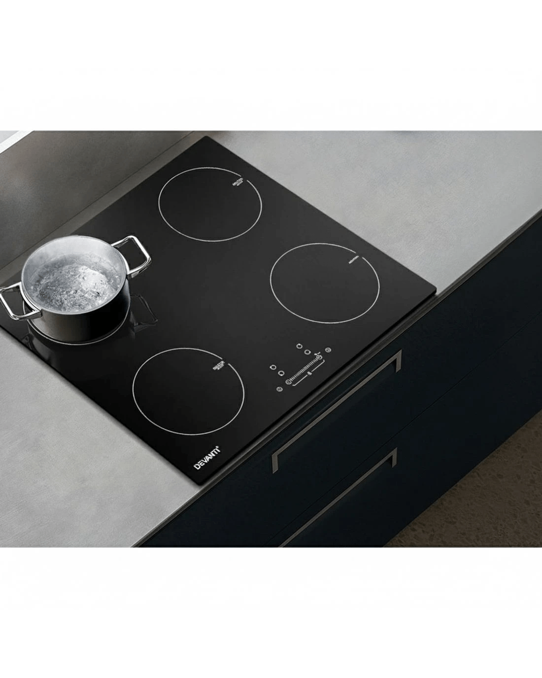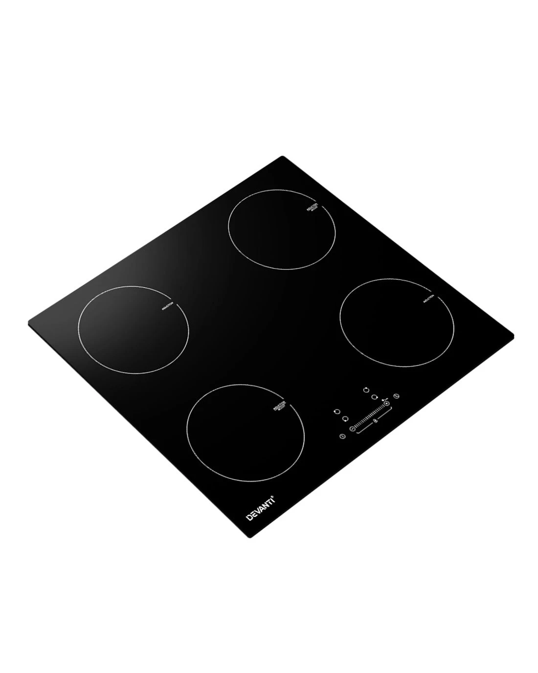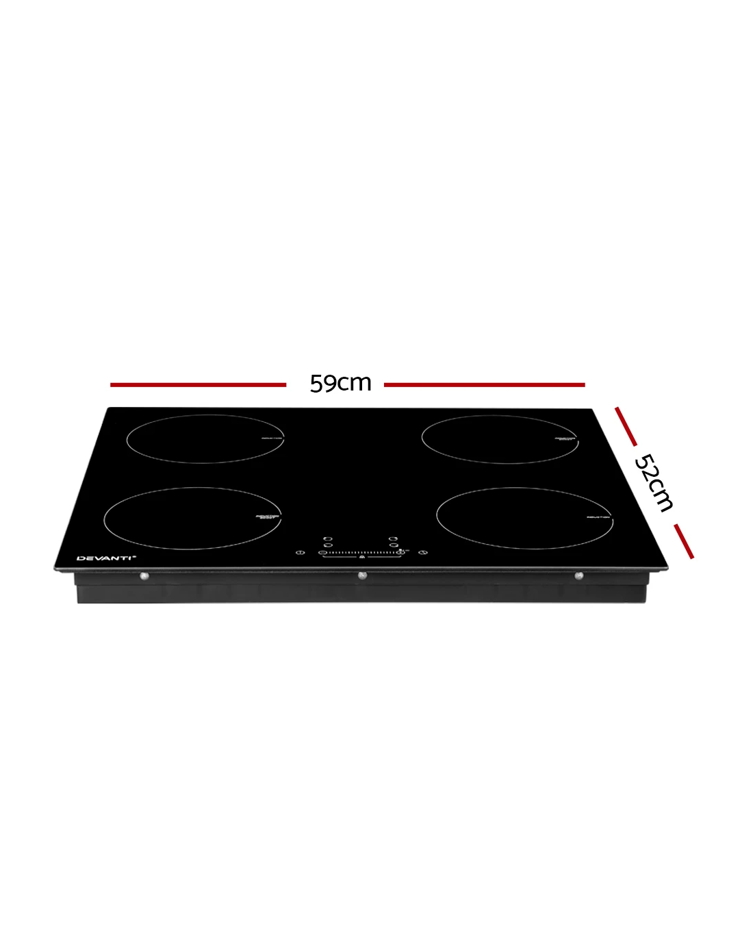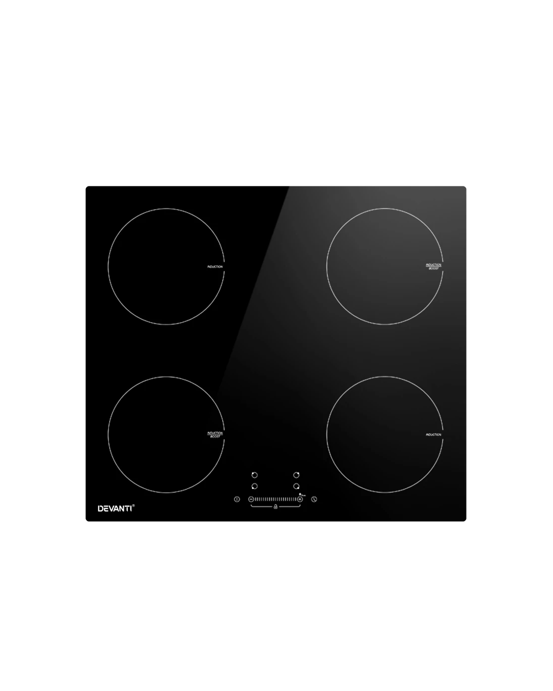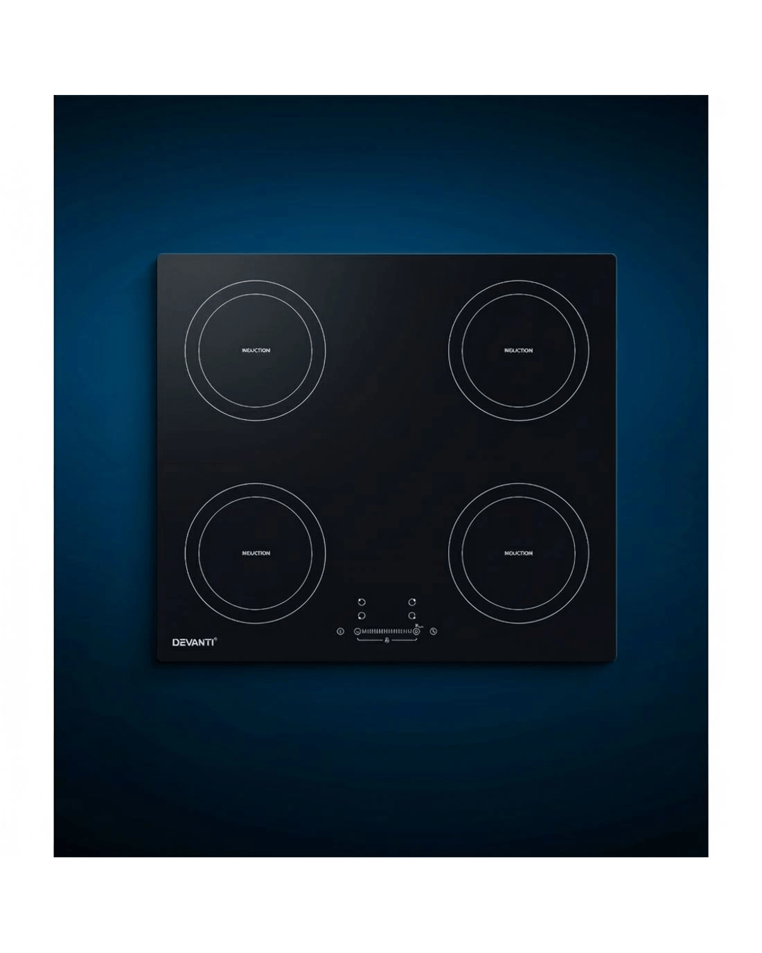 Whether it is for your existing or new home, the Devanti 60cm Induction Cooktop is just the thing you need for easy, no-fuss cooking. Loaded with an extensive list of chef-friendly features such as four high-wattage cooking zones, touch control and LED display panel, independent 99-min timers, overheat protection and efficient heat dissipation, this cooktop is also incredibly sleek with its high-grade black ceramic glass plate. It features nine power levels to choose from to prepare that perfect dish. Plus, the residual heat indicator also helps to tell when it is safe to touch the cooktop after turning the hot plates off, and a child safety lock prevents accidental usage. Better still, the cooktop will turn itself off when temperatures get excessively high, or you simply forget to turn it off after your cooking. Powerful and yet integrally safe, the cooktop promises many moments of hassle-free delicious cooking with the right blend of sophistication and class for your kitchen.