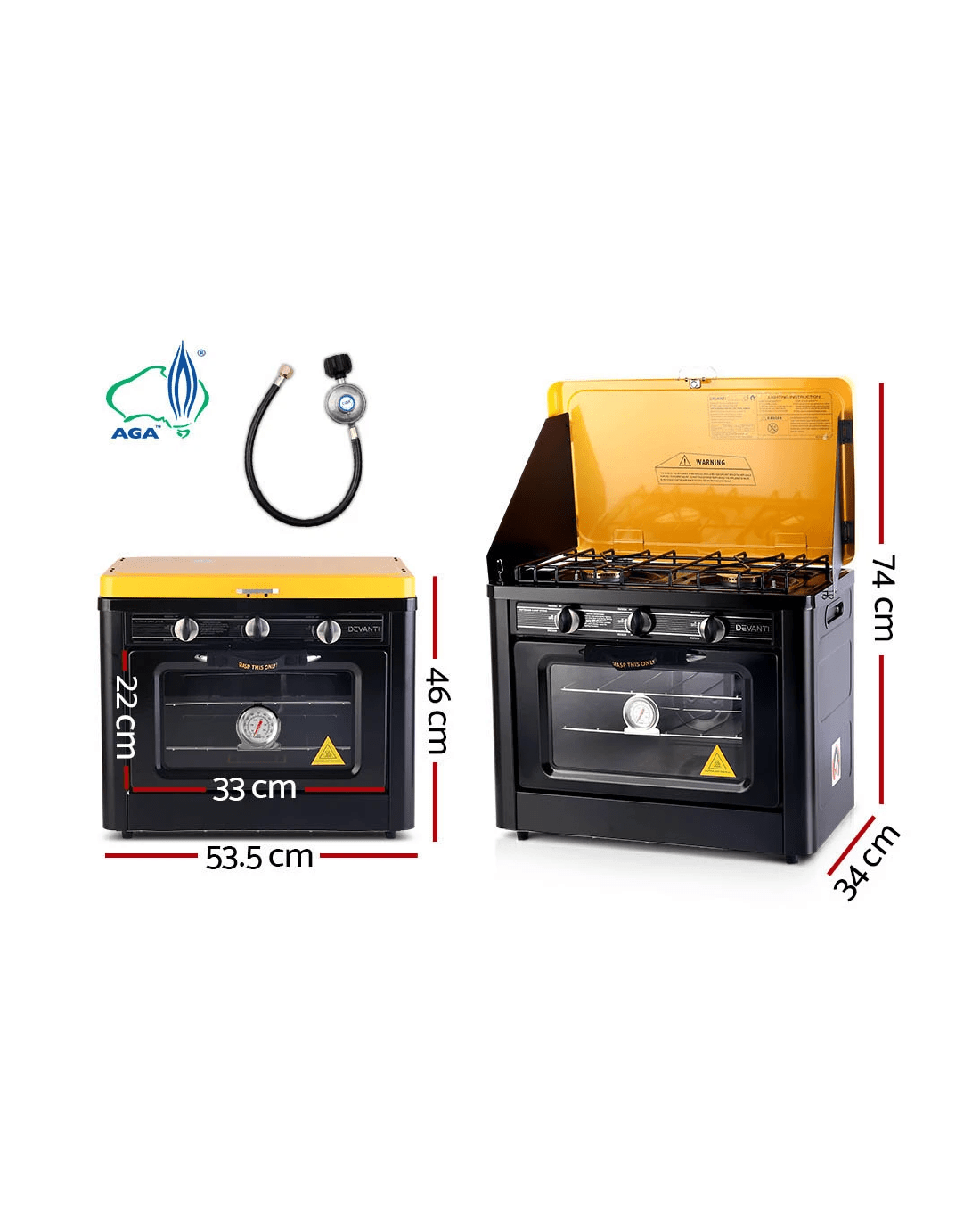 So say goodbye to cold canned food and miserable camping rations. The Devanti Portable Gas Stove and Oven is your must-have companion for all your outdoor adventures and culinary pleasures.