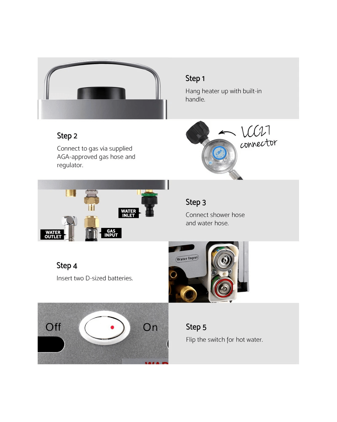 Who doesn't like a just-right warm water shower anywhere, anytime? The Devanti Gas Water Heater is all you need for that instant shower gratification.