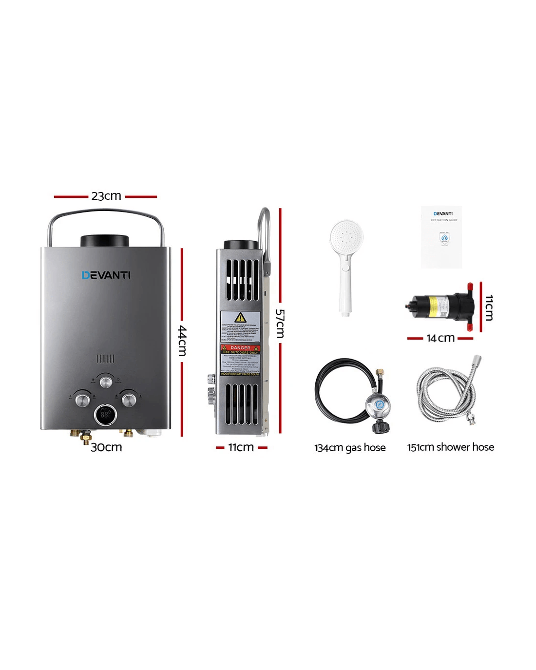 Devanti Portable Gas Water Heater With Pump LPG System - Multi