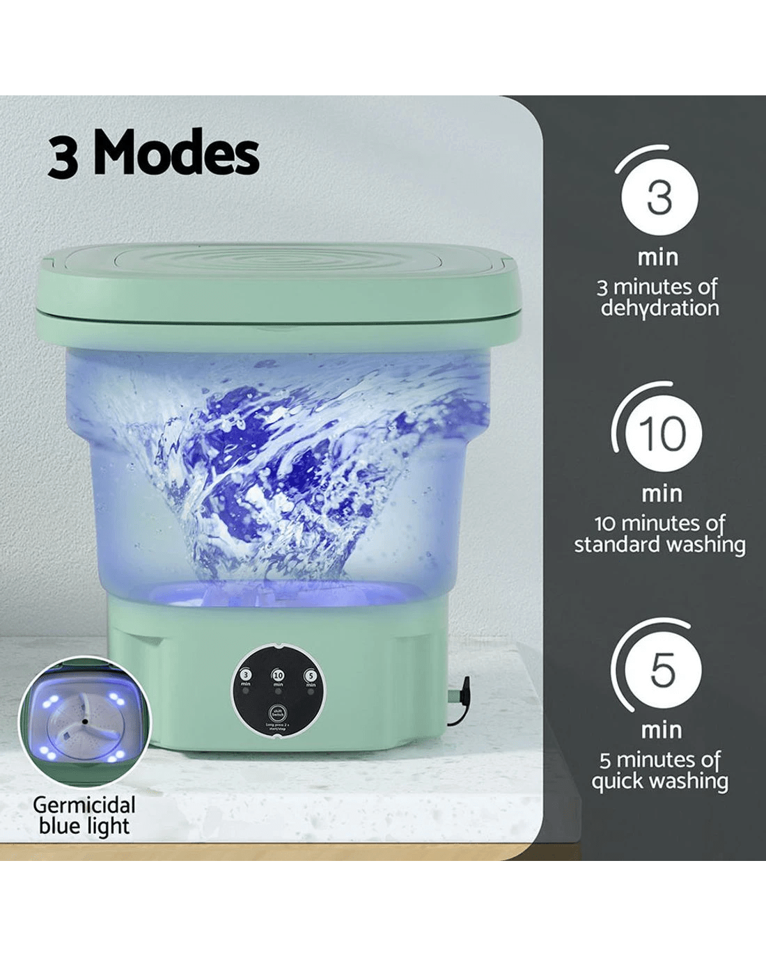Get your washing done on the go with a Devanti Foldable Washing Machine. The ultimate in convenience technology, this portable washing machine will give you clean clothes while travelling, working or just in case of emergency. Its lightweight and foldable design means you can take it with you anywhere – in the car, in your luggage, or in your camping swag. Simply fill the machine and choose your preferred cleaning mode: quick drain, standard wash or quick wash. The machine features germicidal blue lights that turn on during the wash, helping to sanitise your clothes. With a separate drainage basket, a quick drainage system and anti-slip legs, the Devanti Portable Washing Machine is ideal for time-poor cleaners.