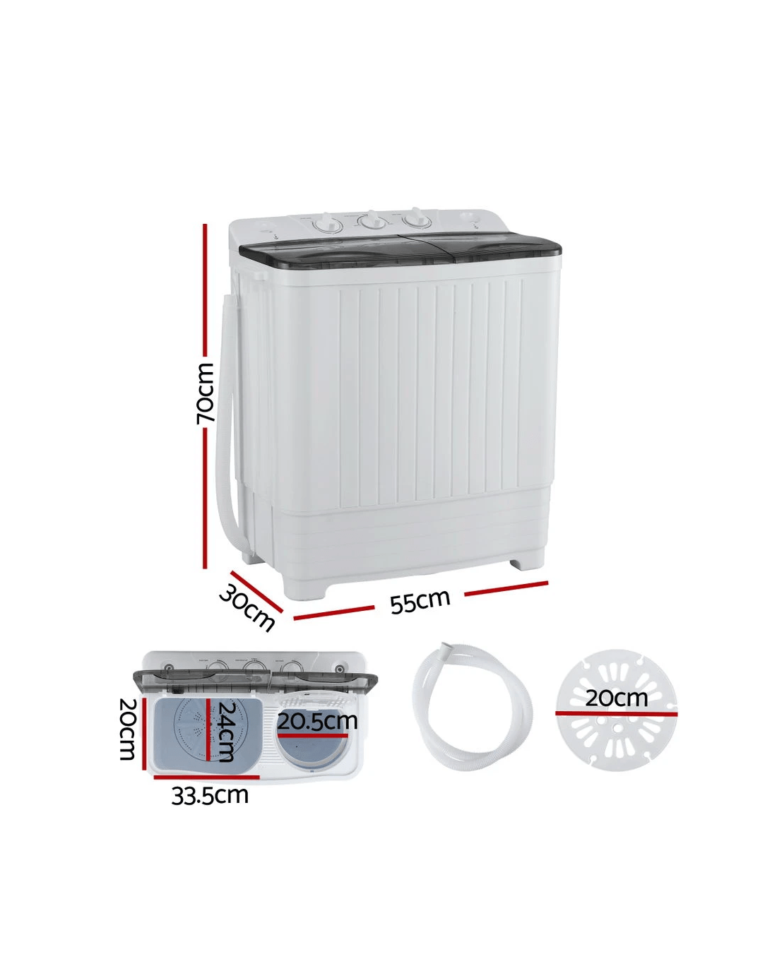 Sold by Aisle SixDevanti Portable Washing Machine Twin Tub 4.5KG - Grey