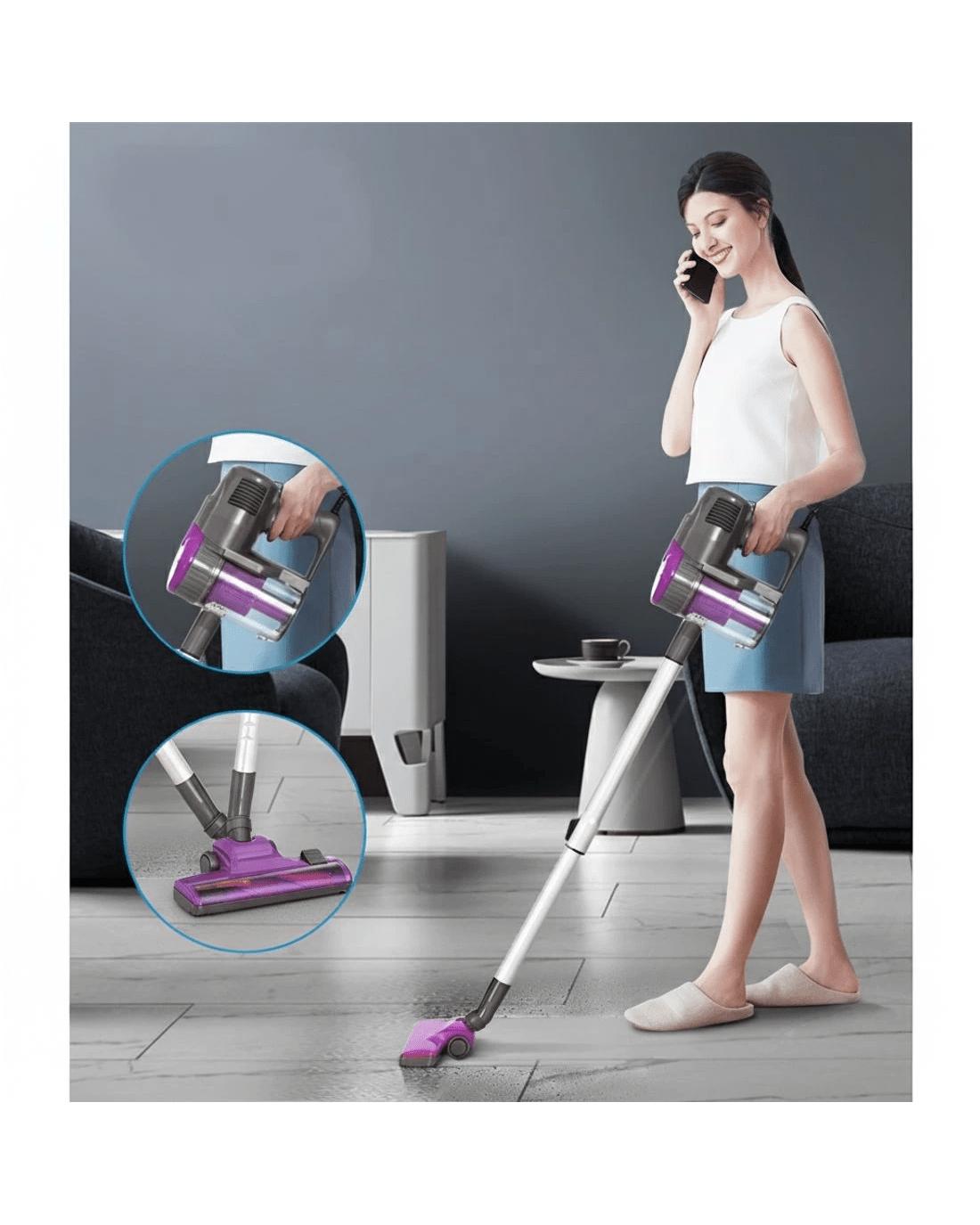 For the ultimate in easy vacuuming, our Devanti Handstick Vacuum Cleaner always makes for efficient cleaning. The powerful 500W 33,000rpm motorised head has steady suction power for a thorough clean. Its pivoting head tilts and swivels, and the included 2-in-1 brush and crevice nozzle can be fitted for any surface or space. Its cable design allows you to vacuum continuously. The generous 3.8m cable lets you reach every corner and you can convert to handheld mode within seconds. All collected dirt and debris pass through a washable and reusable HEPA filter that eliminates up to 99.97% of dust and allergens. Other features include an extendable handle and a one-click design to empty the dust container. Join the cleaning revolution and enjoy hassle-free vacuuming with a Devanti Handheld Vacuum Cleaner.