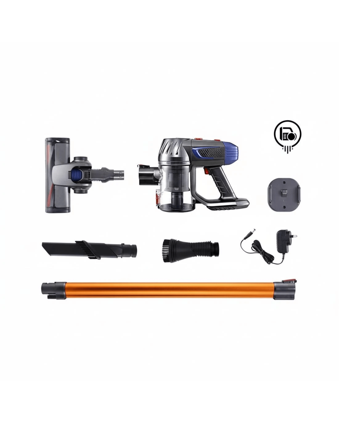 Our Devanti Handstick Vacuum Cleaner gives you the freedom to use it in any tight space or where spot cleaning needs to be done without lugging a big machine behind. Its powerful 150W 30000rpm motorised head has a steady suction power of up to 10000Pa and comes with two-speed suction for more vacuuming options. The 160° swivelling head can also be fitted with brush or crevice nozzles for different types of surface and zone cleaning that allows it to pick up dirt and debris easily. That makes the vacuum ideal for cleaning carpets, curtains, shelves, soft furnishings, vehicle interiors and delicate objects as well as vacuuming ceiling, corners, niches and gaps. The one-handed design is lightweight and bagless. All collected dirt and debris pass through a washable and reusable HEPA filter that eliminates up to 99.97% of dust and allergens. Not least, the vacuum cleaner can work its magic for up to 35 minutes of continuous running time on low speed (25 minutes on high speed) with the rechargeable 2000mAh lithium-ion battery.