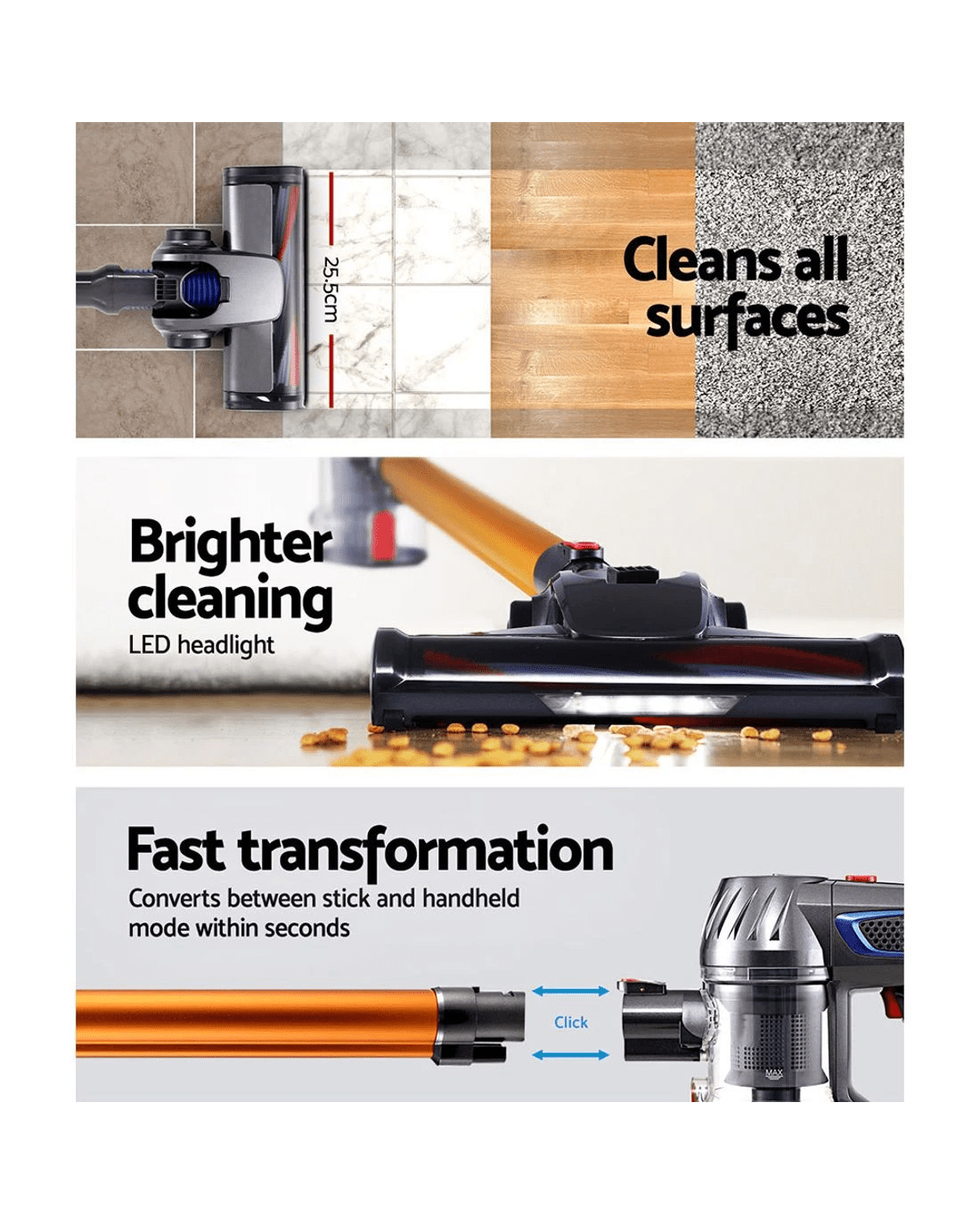 Sold by Aisle SixDevanti Stick Vacuum Cleaner Bagless Cordless 150W Gold - Gold