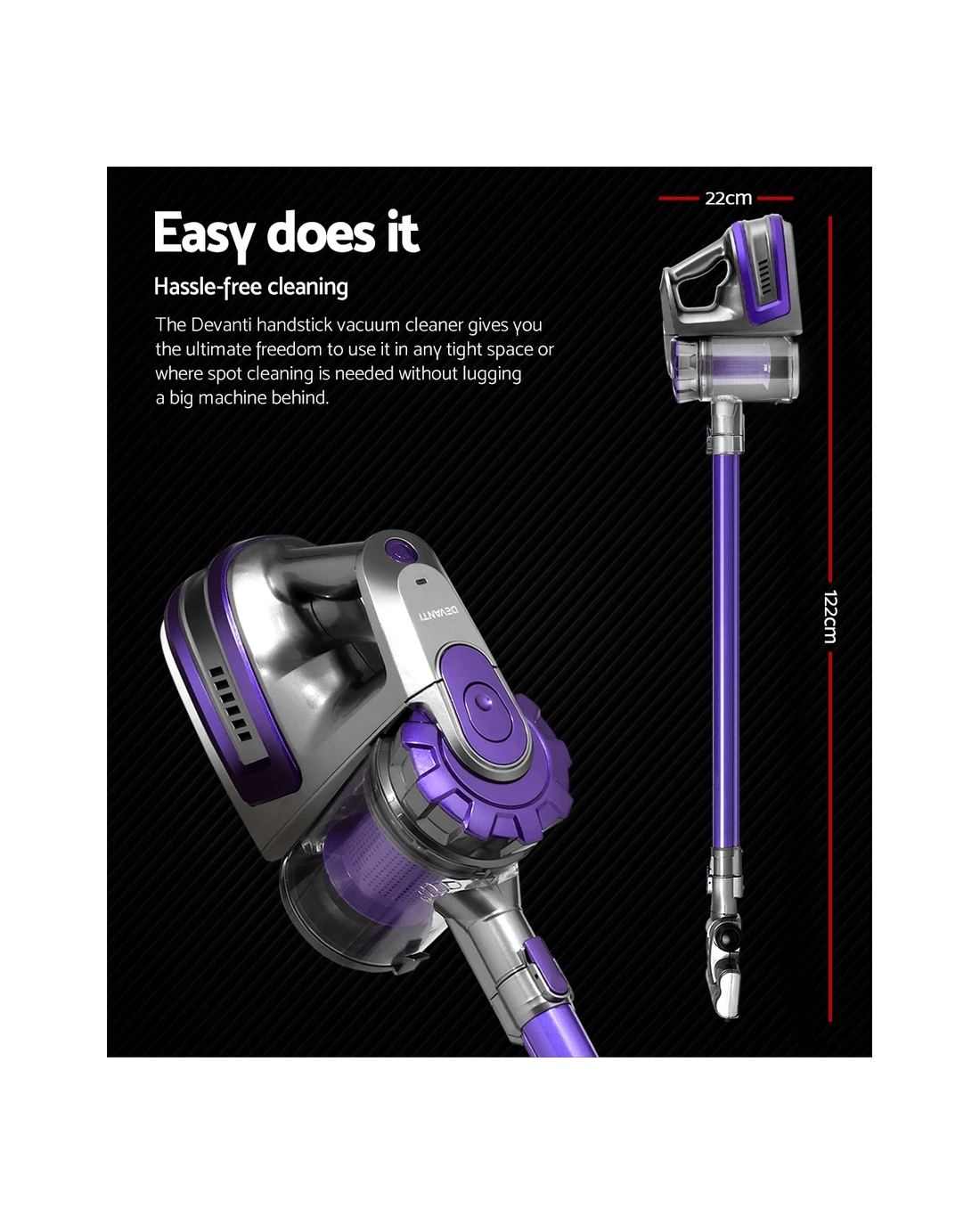 Sold by Aisle SixDevanti Stick Vacuum Cleaner Bagless Cordless 150W Purple - Purple