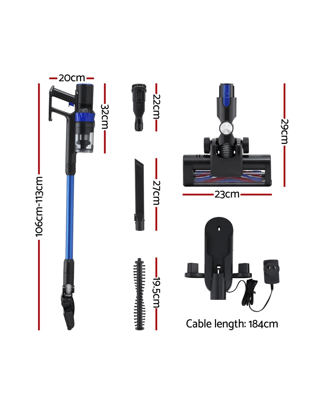 Keep your floors spotless with the Devanti handstick vacuum cleaner, designed for powerful performance and everyday convenience. Its strong suction and soft roller head are gentle on hard floors yet tough on dust, dirt, and fine debris. The upgraded brushless motor offers adjustable two-speed modes, lower noise, and improved energy efficiency, while the 2000mAh rechargeable Li-ion battery provides extended runtime for whole-home cleaning.
