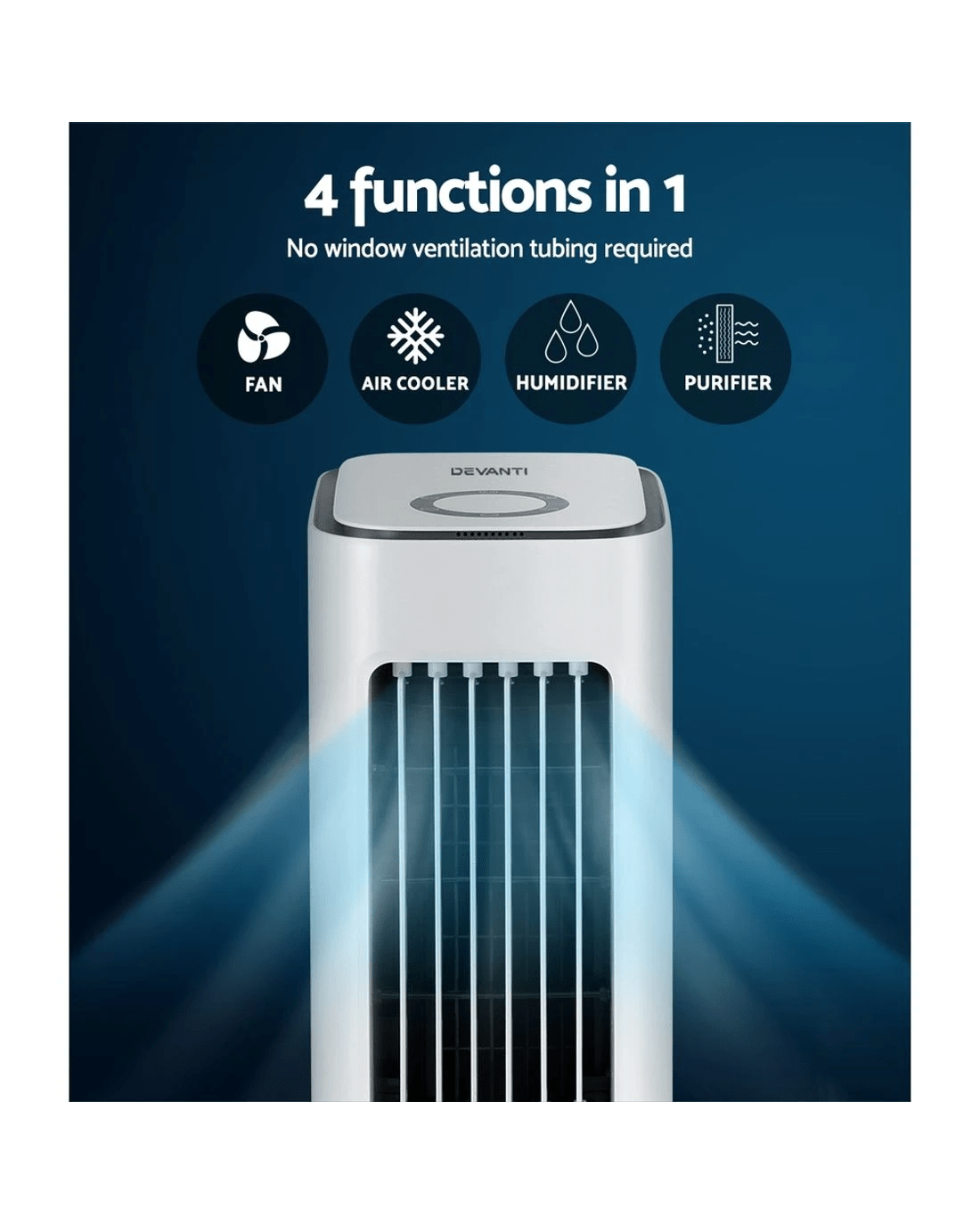 4-in-1 functions - Air cooler, fan, humidifier, purifier