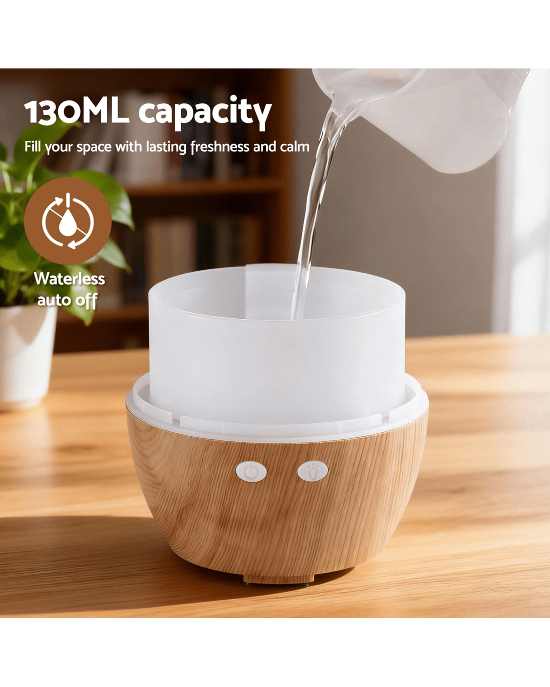 Enhance your space with this creatively designed diffuser featuring a textured surface that adds a modern, stylish touch to any room. Its ultrasonic technology disperses a fine, refreshing mist that improves air moisture and delivers the soothing benefits of your favourite essential oils. The 130ml reservoir and two mist modes provide effective humidification, while whisper-quiet operation ensures a peaceful environment. Two LED lighting functions with soft 7-colour glow create a calming atmosphere for relaxation, sleep, or work. Automatic waterless shutoff and low energy consumption make it safe and efficient for daily use.