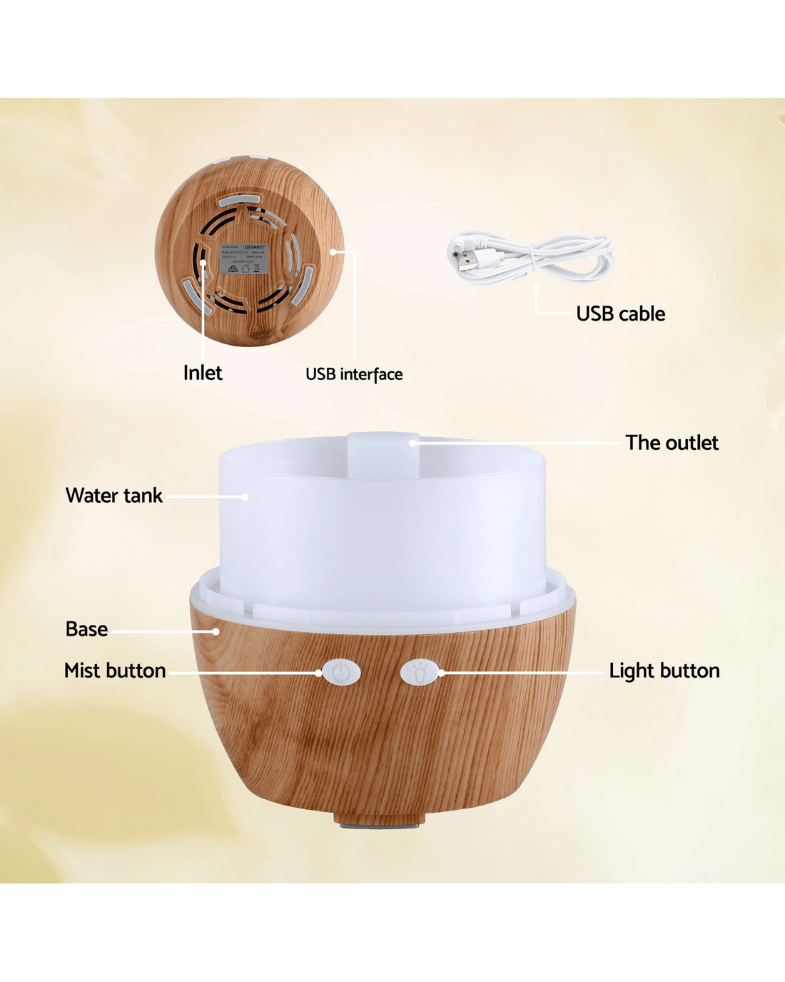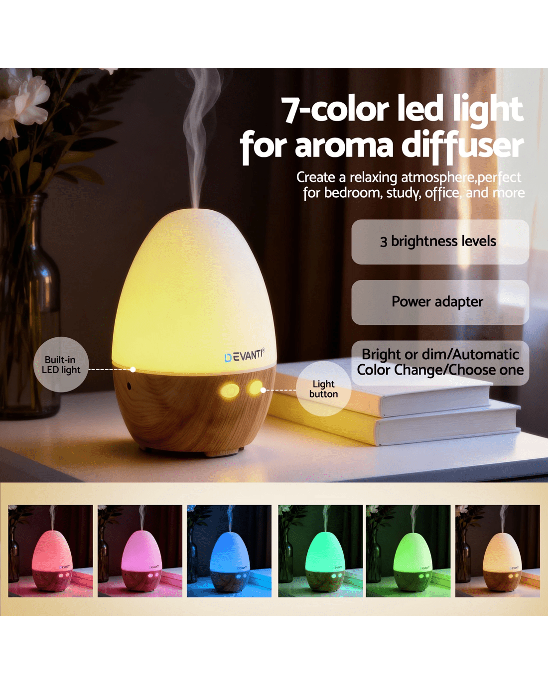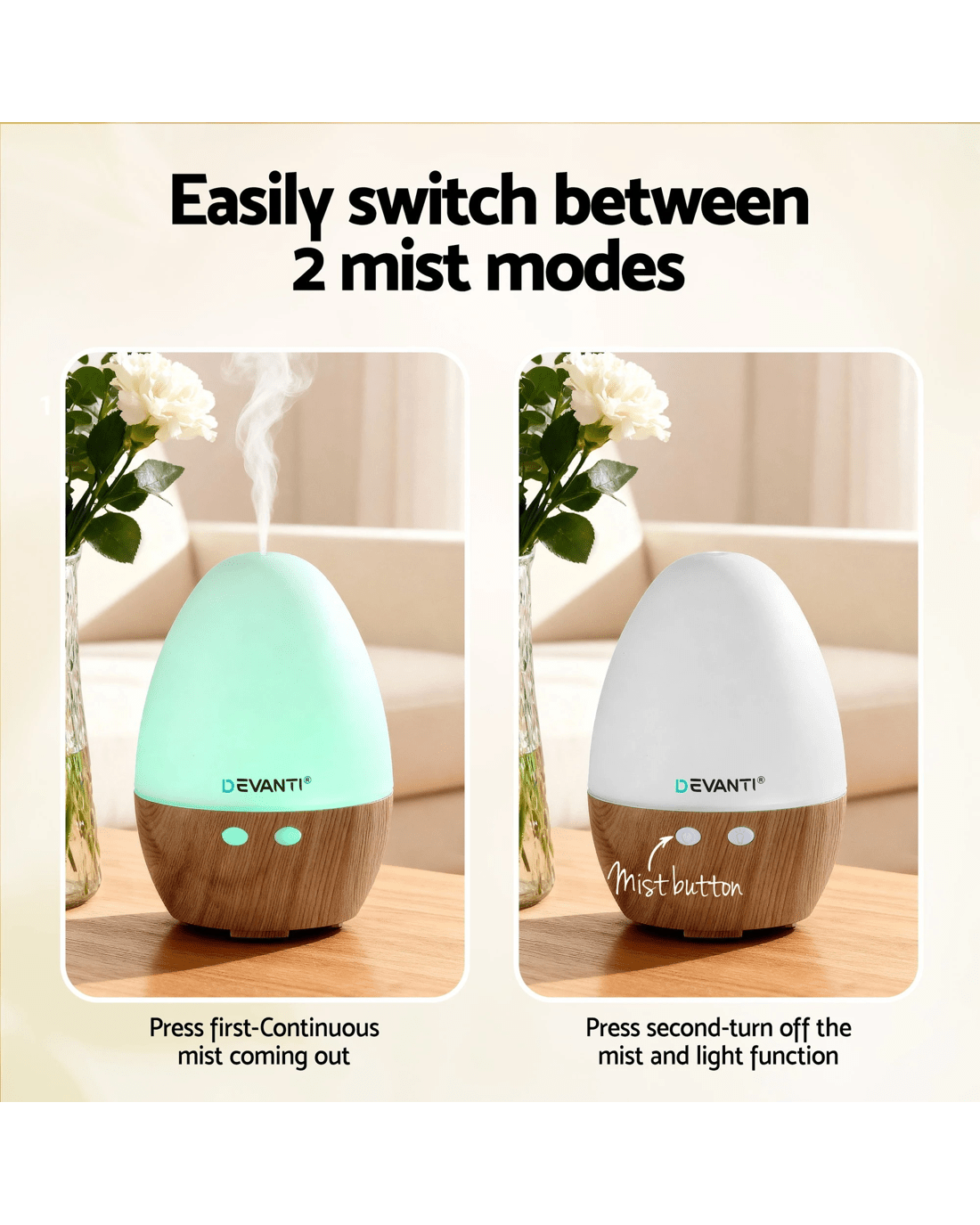 Devanti Ultrasonic Aroma Diffuser Aromatherapy 130ml LED Lights Iron Humidifier - Multi