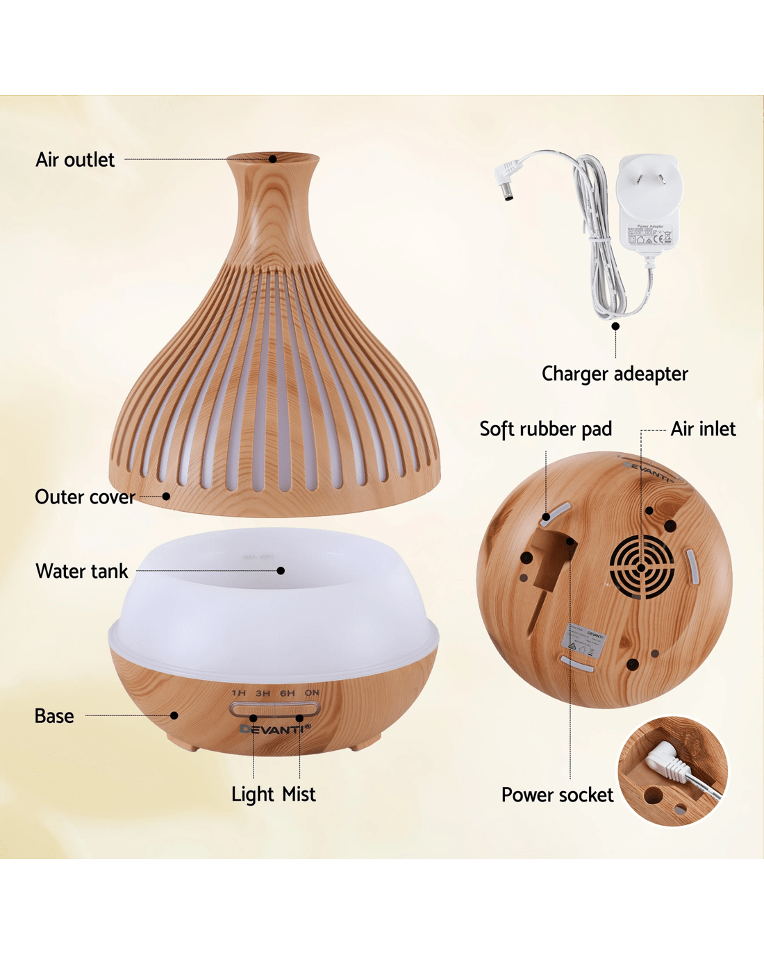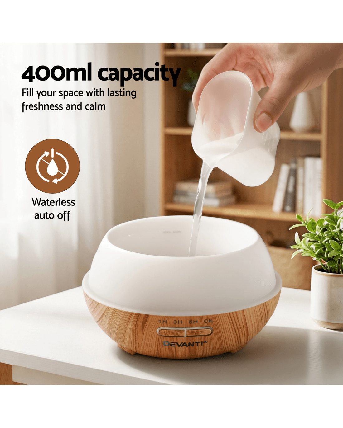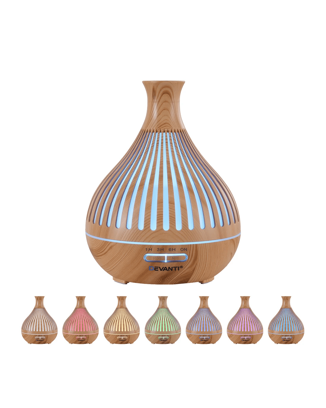 Sold by Aisle SixDevanti Ultrasonic Aroma Diffuser Aromatherapy 400ml LED Lights Iron Humidifier Light wood grain - Natural