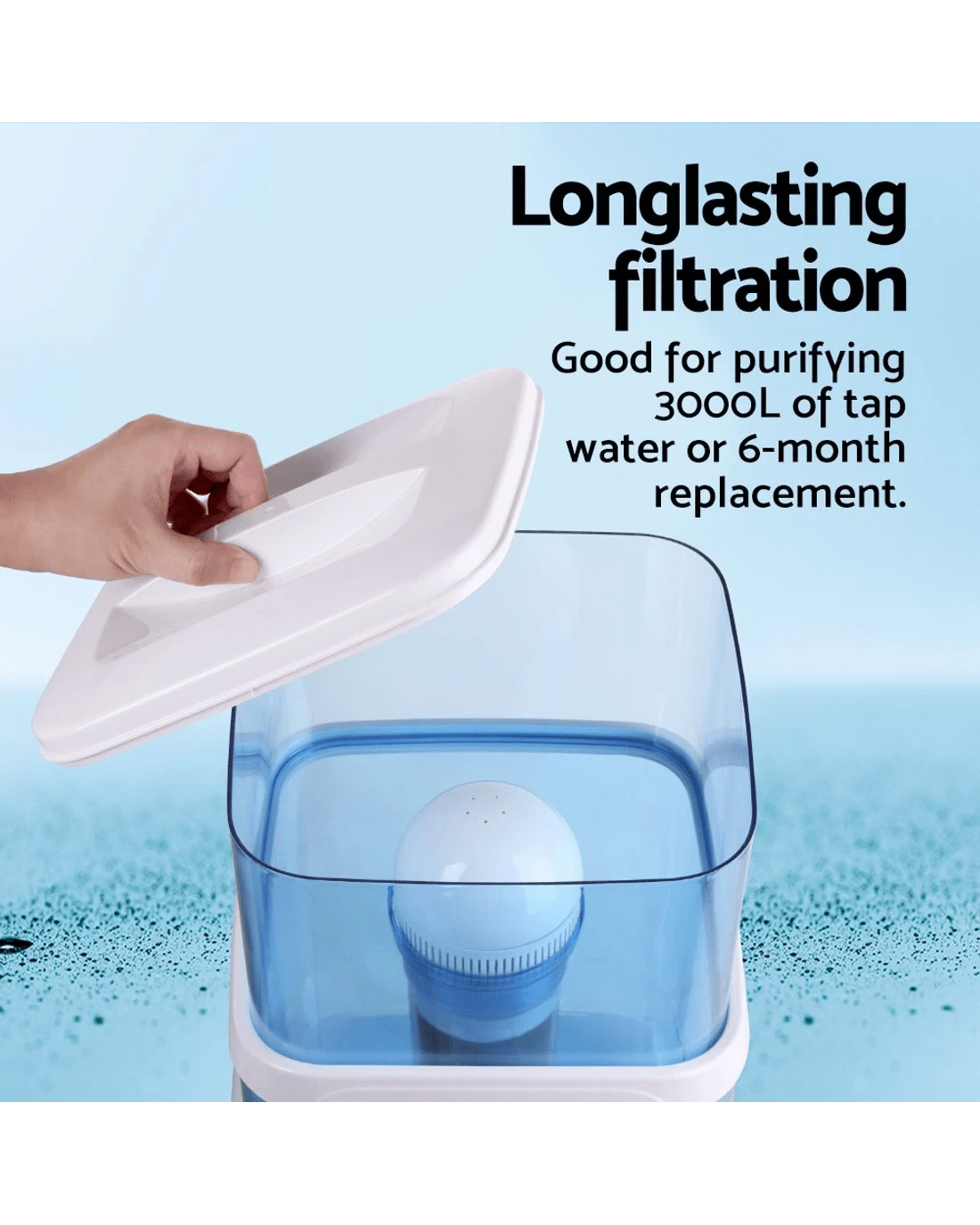 Purifies up to 3000L tap water