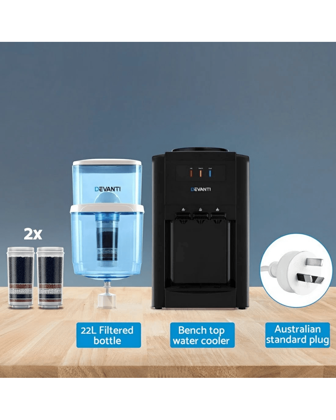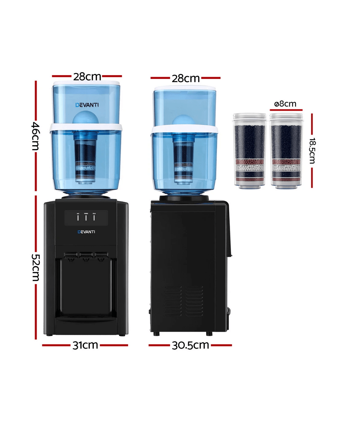Sold by Aisle SixDevanti Water Cooler Dispenser Bench Top 22L w/2 Filter - Black