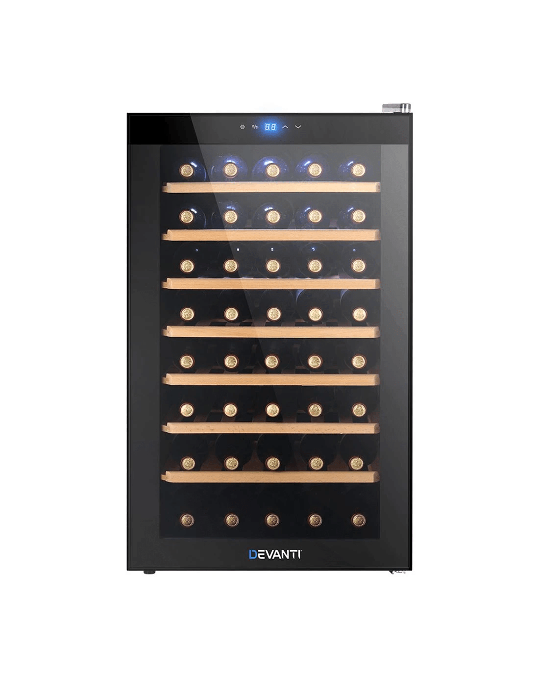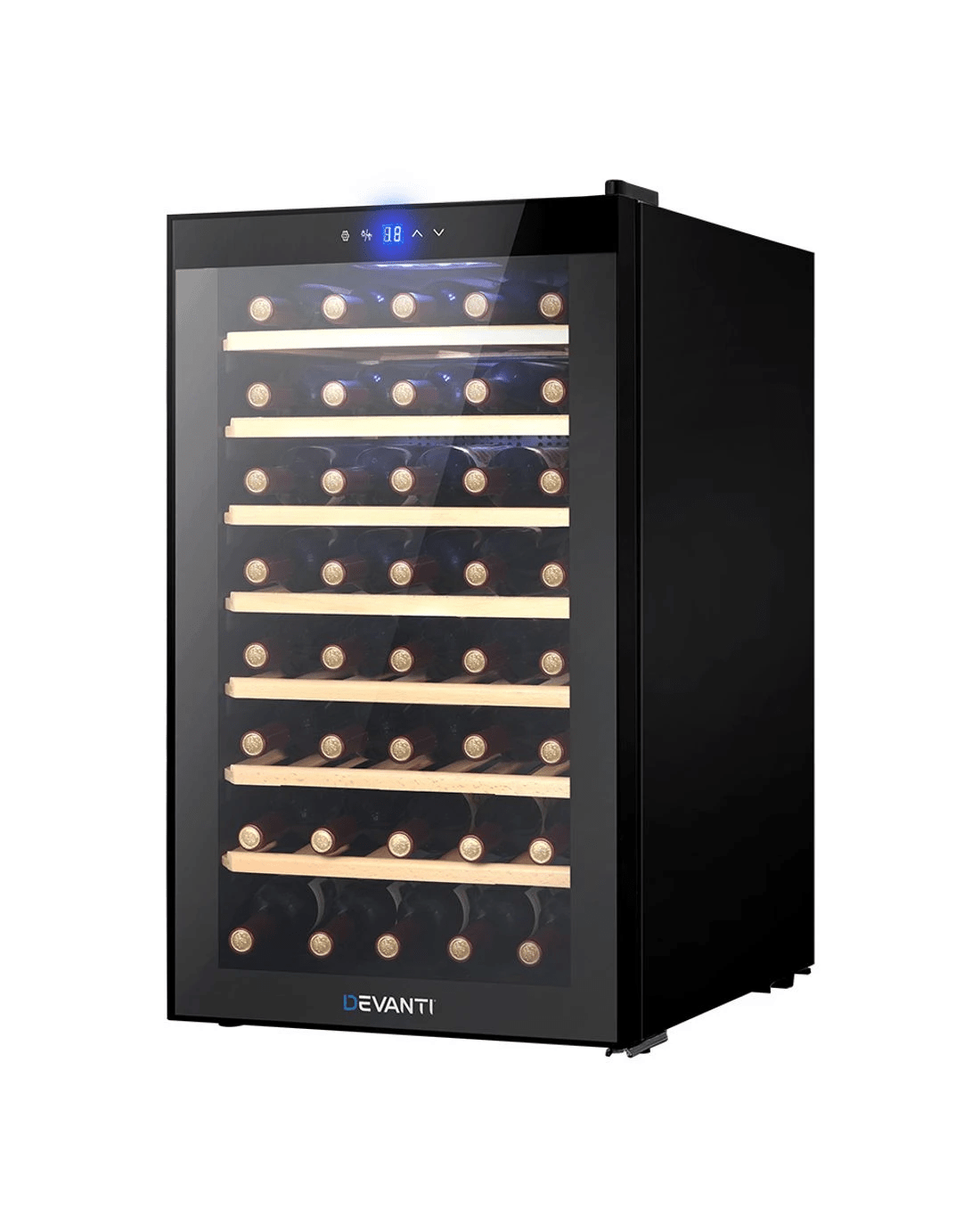 Need a good and reliable wine cooler? Look no further than our Devanti Wine Cooler. Utilising the latest high precision compression cooling technology, our wine cooler ensures your favourite vintages are well kept at their prescribed temperatures with its 360° circulated cool air. The touch control panel makes for easy adjustments with temperature control and the built-in interior LED light helps you to see your wines in the best light. The stylish and compact design stores up to 51 bottles of wine in a neat and tidy shelving system. The shelves are removable to allow for changing the layout according to the contents and for easy cleaning as well. Better still, the double-glazed glass door is UV-resistant and provides excellent insulation. The wine cooler works quietly and efficiently and has a handy child-lock on its control panel for total peace of mind use.