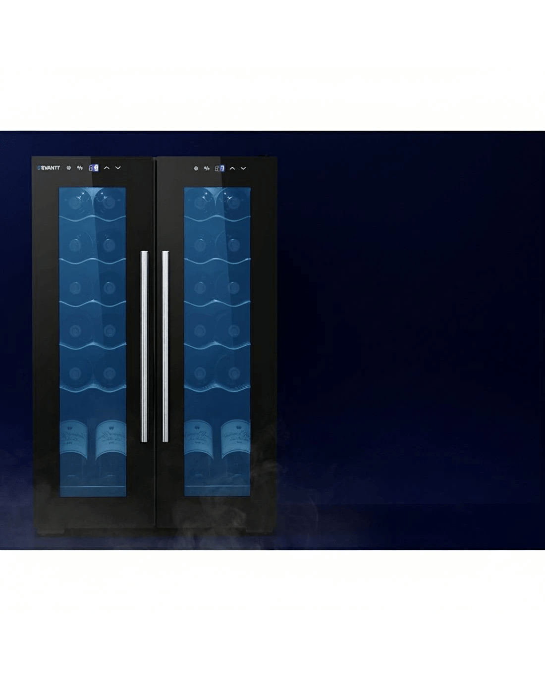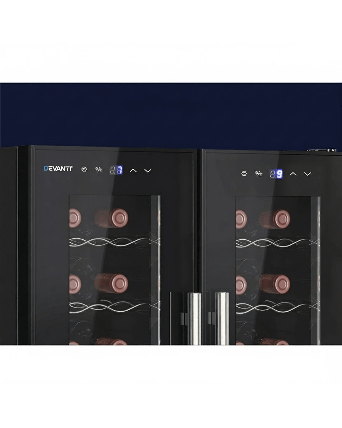 Need a reliable way to store your wine collection? Look no further than our Devanti Wine Cooler. Utilising the latest high-precision compressor cooling technology, our wine cooler ensures your favourite vintages are well kept at their recommended temperatures with its circulated cool air. The cooler has a dual zone system with two separate temperature-controlled zones, ensuring perfect cooling temperatures for both white and red wines. The temperature can be set between 5℃ and 13℃ for the upper zone (which is suitable for dry white and sparkling wines), and between 12℃ and 18℃ for the lower zone (which is suitable for red wines). The digital control panel makes for easy temperature adjustments while the built-in LED lights help you to see your wines in the best light. The stylish design stores up to 24 bottles of wine in a neat and tidy chrome shelving system. Better still, the double-glazed glass door is UV-resistant and provides excellent insulation. The ensemble works quietly and efficiently and has a built-in lock for total peace of mind. Suitable for both home and commercial use. Treat your vintage collection with the care it deserves - invest in a Devanti Wine Cooler today.