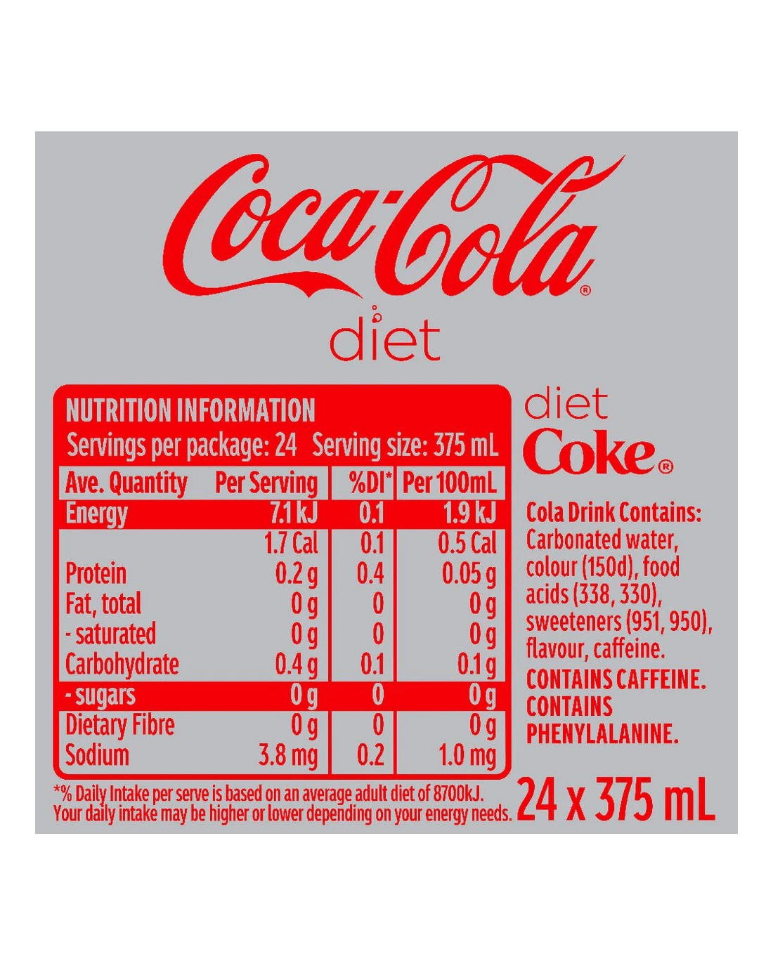Diet Coca-Cola Cans 375mL 24 Pack